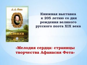 Мелодия сердца: страницы творчества Афанасия Фета