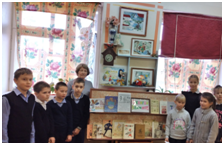 Библиотекарь познакомила ребят с творчеством писателя, провела обзор книжной выставки.