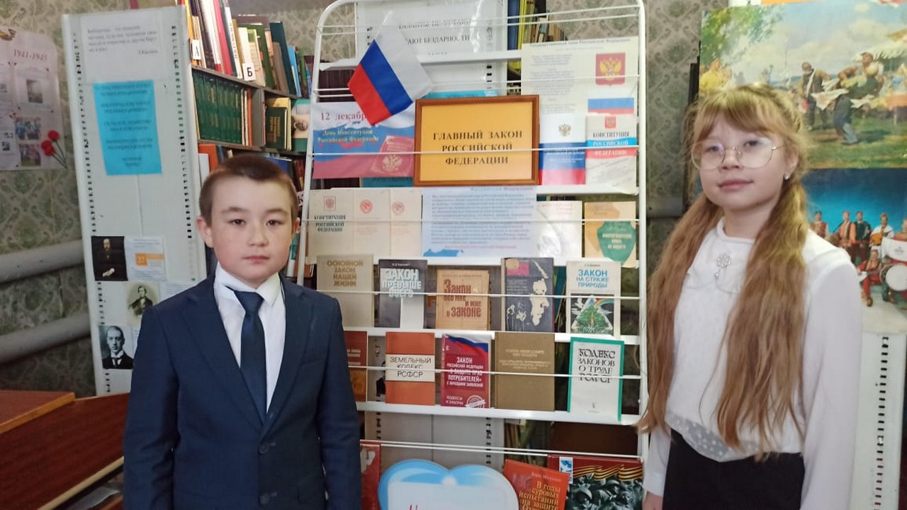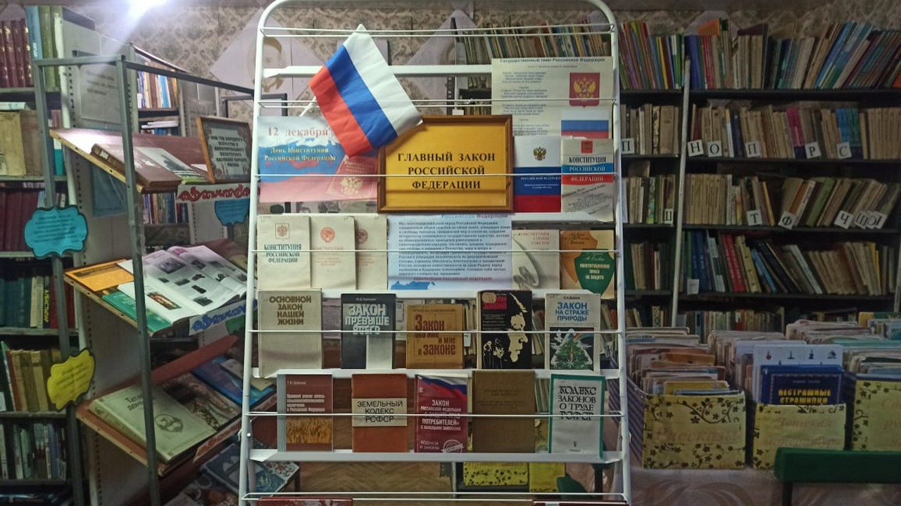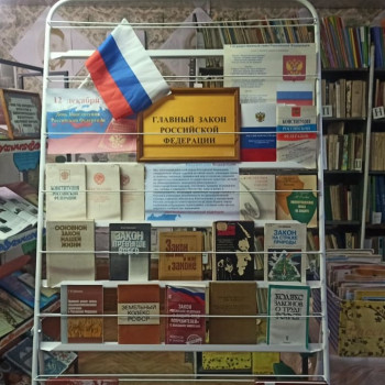 12 декабря в Берёзкинской сельской библиотеке для читателей оформлена книжная выставка «Главный закон Российской Федерации». На выставке были представлены книги, справочные издания, посвященные конституционному праву, истории государства, государственной символике России и истории создания Конституции. Библиотекарь напомнила ребятам о значении и роли Конституции в обществе, рассказала о том, в чем заключается ее суть и главная цель.