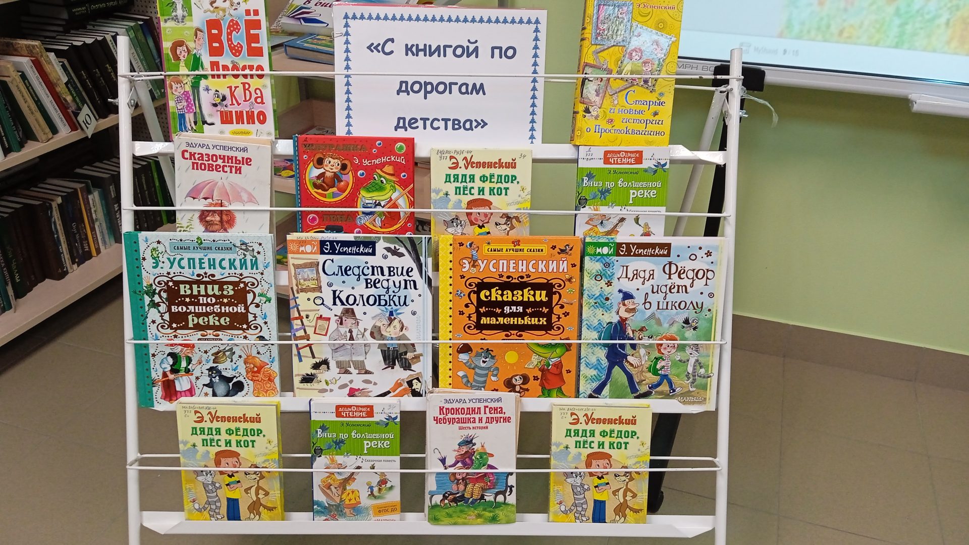 К 85-летию со дня рождения детского писателя Эдуарда Николаевича Успенского в Чернышевской модельной библиотеке оформлена книжная выставка «С книгой по дорогам детства».  «Зима в Простоквашино», «Каникулы в Простоквашино», «Следствие ведут колобки», «Крокодил Гена и его друзья» и многие другие произведения читатели нашли на выставке.