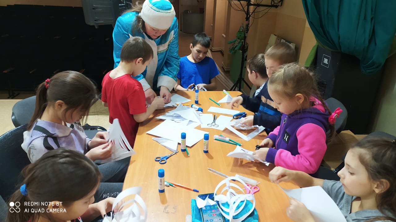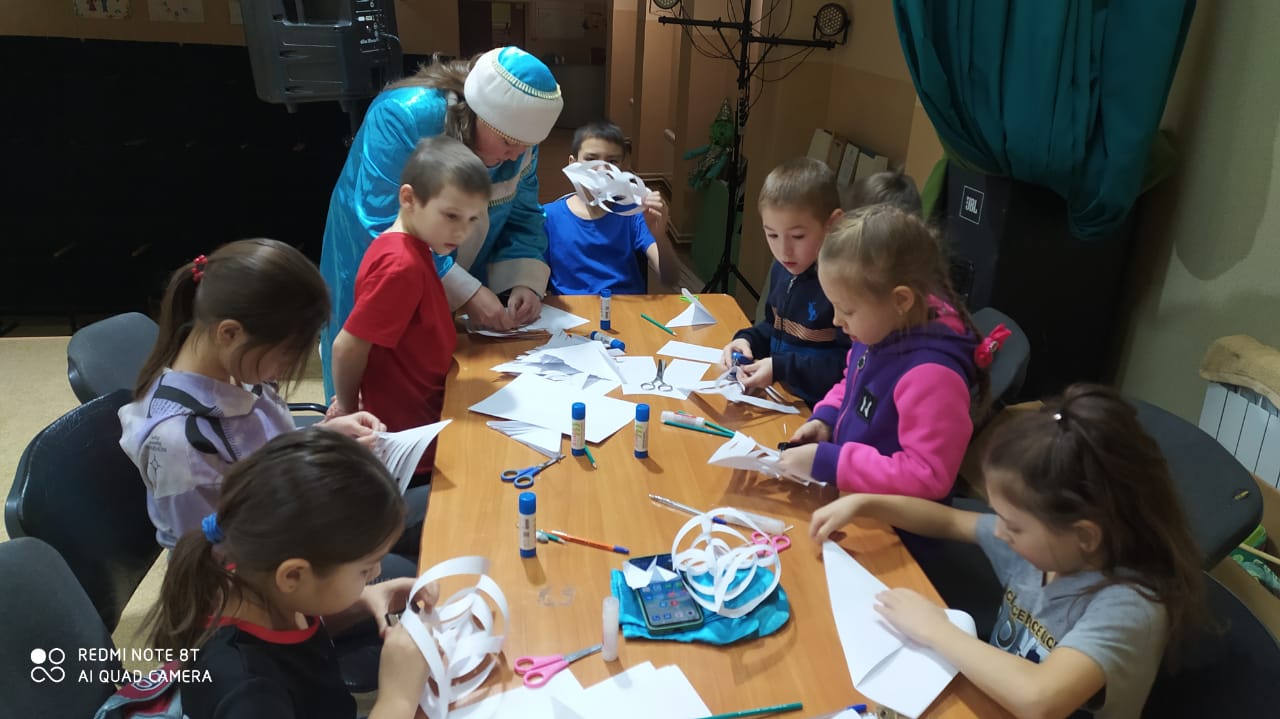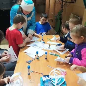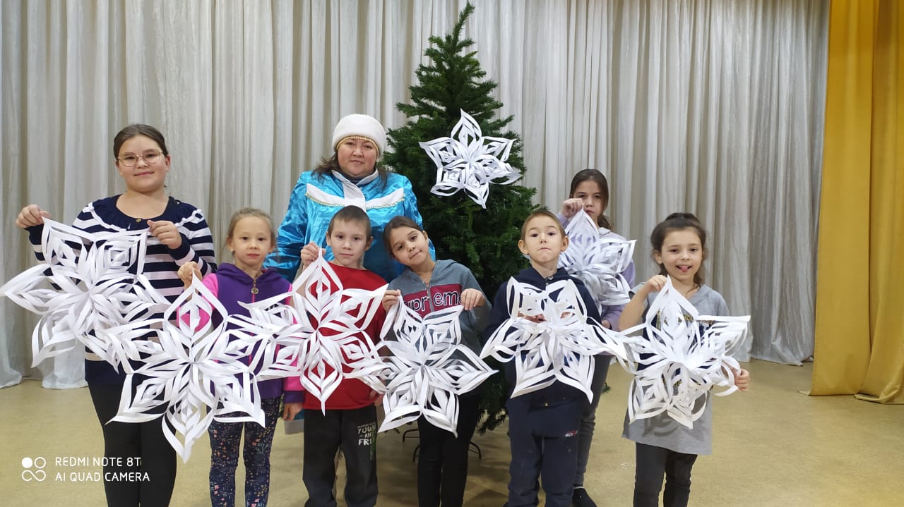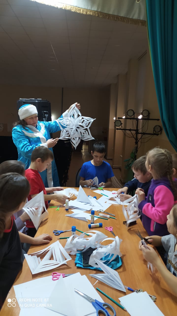 Во время зимних каникул юные читатели Куркачинской сельской библиотеки посетили мастерскую Снегурочки. Снегурочка предложила детям изготовить новогодние снежинки. Снежинки из бумаги – одно из самых распространенных новогодних украшений. Они просты в изготовлении, но при всем при этом отлично украшают дом, создавая атмосферу зимней сказки. Ребята быстро окунулись в мир волшебства. В дружеской атмосфере дети вместе со Снегурочкой создавали объемные снежинки. В результате творчества детей вышли очень красивые снежинки. Оказалось, что превратить скромный лист бумаги в роскошную снежинку на удивление просто. Дети остались довольные, что смогли научиться делать своими руками такую красоту.