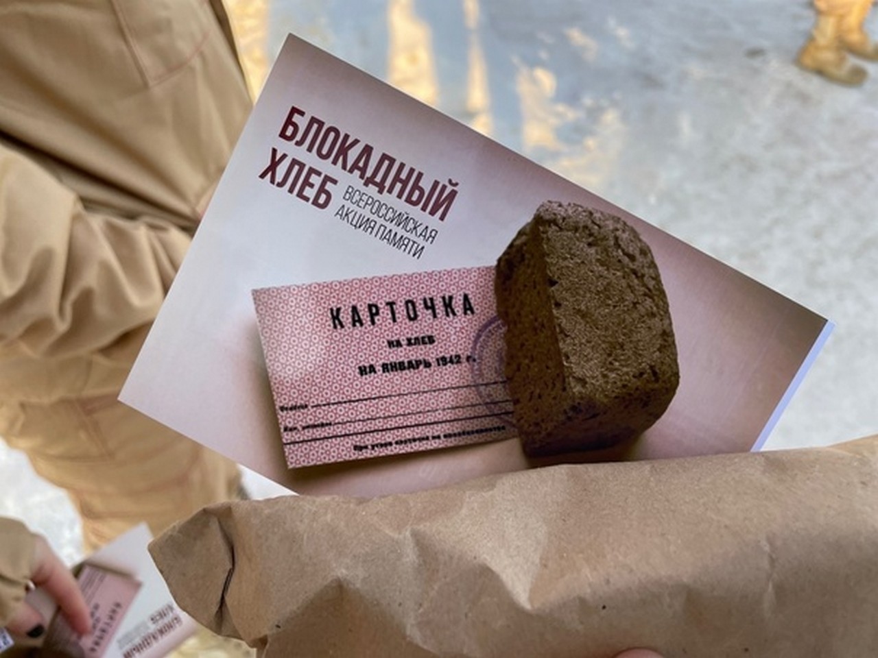 Ребята раздали информационные листовки о Блокаде Ленинграда, а также символ акции памяти – небольшой кусочек хлеба весом 125 грамм. Такой была минимальная норма выдачи хлеба в Ленинграде в период Блокады.
