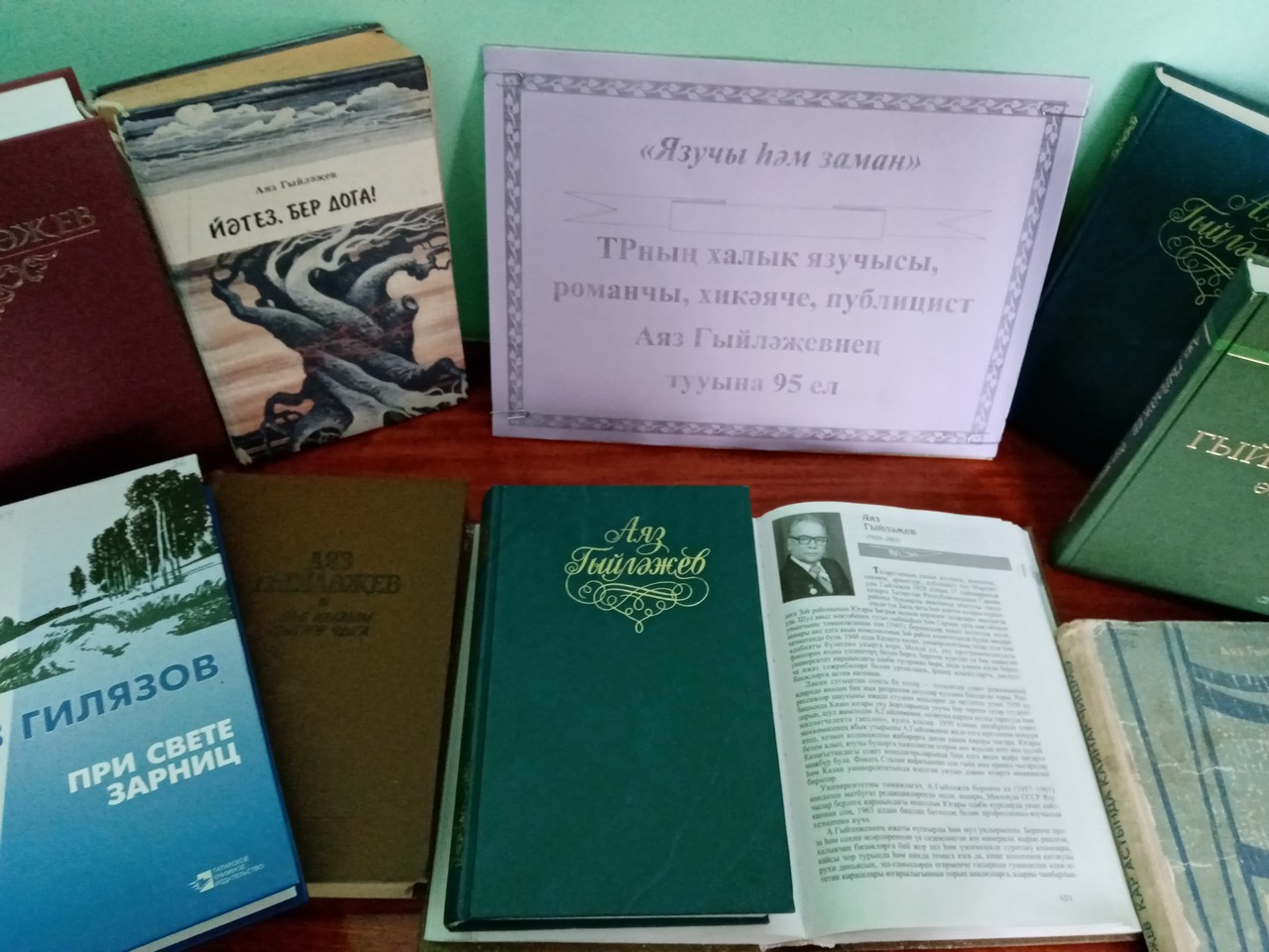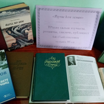 17 января в Суксинской сельской библиотеке была организована книжная выставка «Писатель на все времена», посвященная 95-летию со дня рождения народного писателя Татарстана, драматурга, публициста Аяза Гилязова. На выставке были представлены произведения писателя, внесшего большой вклад в татарское литературное наследие: «Кар астында кайнар чишмә», «Әтәч менгән читәнгә», «Йәгез, бер дога!», «Дус кызым кияүгә чыга» и множественные избранные произведения, написанные рукой умелого писателя, неравнодушного к судьбе нации, страны. Библиотекарь провела обзор книжной выставки и вкратце рассказала о жизни и творчестве поэта. Произведения писателя любимы читателями и по сей день.