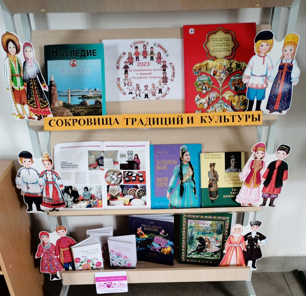 21 января в библиотеке села была оформлена книжная выставка посвященная Году Национальных культур и традиций в РТ «Сокровища традиций и культуры». Татарстан является одной из самых многонациональных территорий России – здесь живут в мире и согласии представители 173 национальностей. Для всех народов очень важно сохранить свою идентичность, язык, культуру и традиции. Важно, чтобы подрастающее поколение не стеснялось своей национальности и было самодостаточным. Чтобы молодые люди следовали примеру своих предков, перенимали традиции. Как известно, книги — это носители и накопители знаний и истории. Через книги идет связь поколений, передача информации. Книжные выставки — это способ привлечения внимания читателей к конкретной теме, проблеме, пробудить к чтению книг и других документов по этой теме путем представления и рекомендации лучших из них. На книжной выставке «Сокровища традиций и культуры» представлены книги по фольклору, об истории татарской народной одежды и особенностях национального узора, сказки народов Татарстана.