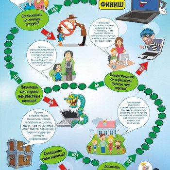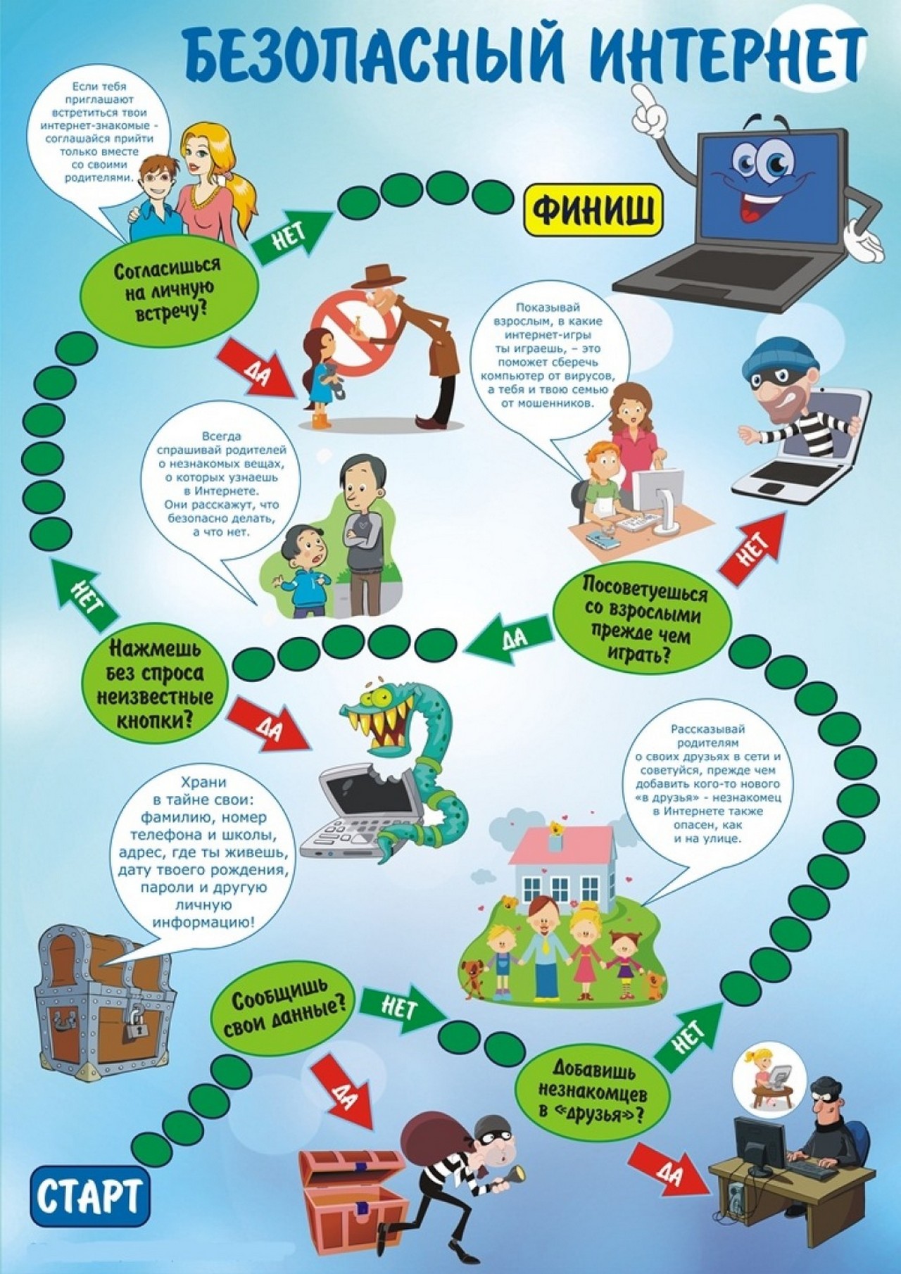 Но есть еще и другая сторона Интернета, и она немало важна. Нужен разумный подход к Интернету, к компьютерным технологиям. Время занятия за компьютером не должен превышать 45  минут. Необходимо пользоваться теми сайтами и браузерами, которые не навредят, а принесут пользу. Нельзя сообщать свои персональные данные в сети, добавлять незнакомцев в друзья, не соглашаться на личную встречу с интернет – знакомыми.  И важно  помнить о том, что общаясь во всемирной паутине, необходимо соблюдать культуру общения. Ребята закрепили полученные знания, пройдя игру – бродилку.