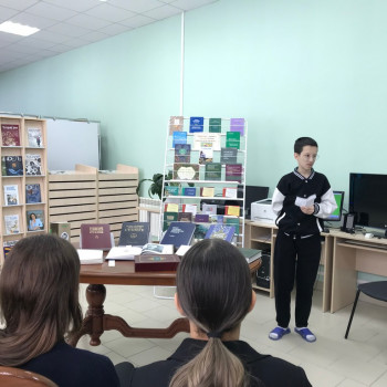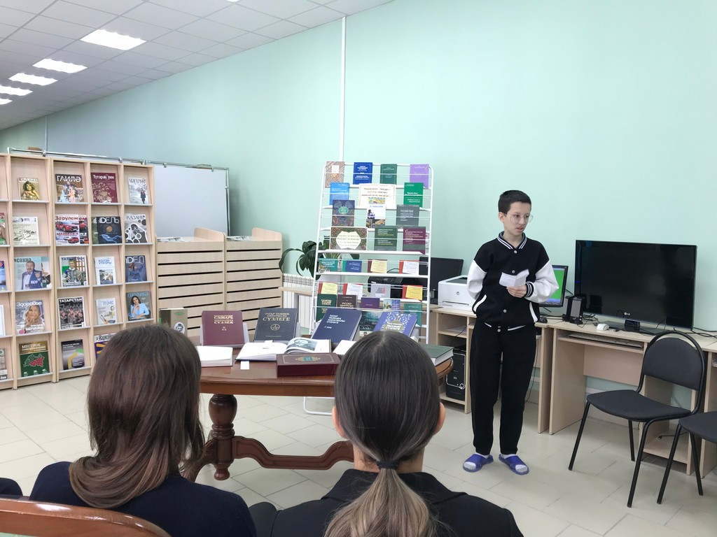 20 февраля, в канун Международного дня родного языка, в центральной библиотеке состоялась встреча со старшеклассниками «Сила и красота родного языка» с девятыми классами ВСОШ №1 (с преподавателем Саляховой Саниёй Рамисовной). Этот день учрежден с целью защиты языкового и культурного многообразия. Язык–это не просто средство общения, это средство передачи культурных ценностей, инструмент развития и сохранения духовного наследия. Об этом и шла речь в беседе с молодёжью. Ребятам рассказали историю формирования татарского языка. Она очень занимательна. На книжной выставке был представлен богатый фонд по языкознанию читального зала центральной библиотеки. Это словари русского и татарского языков: толковые, орфографические, иностранных слов, биографические, синонимов, словосочетаний и множество других различных годов изданий. Галявиева Алина и Никитин Камиль прочитали стихи о языке возле книжной выставки. Так же ребята сами могли полистать книги, выбрав их с выставки. В ходе мероприятия Самигуллина Зарина, Каюмова Эмилия, Хабибуллин Тимур, Кузьмина Камилла активно высказывали свои мысли о значении родного языка, о культуре. В заключении библиотекари пожелали юным читателям любить и беречь свой родной язык, говорить правильно и красиво, не засорять речь грубыми и бессмысленными словами. Ведь родной язык впитал вековой опыт народа. Тысячи лет он создавался многими поколениями наших предков, и каждое слово в нем – словно крупица чистого золота! Мероприятие было проведено в рамках празднования Года национальных культур и традиций в Республике Татарстан.