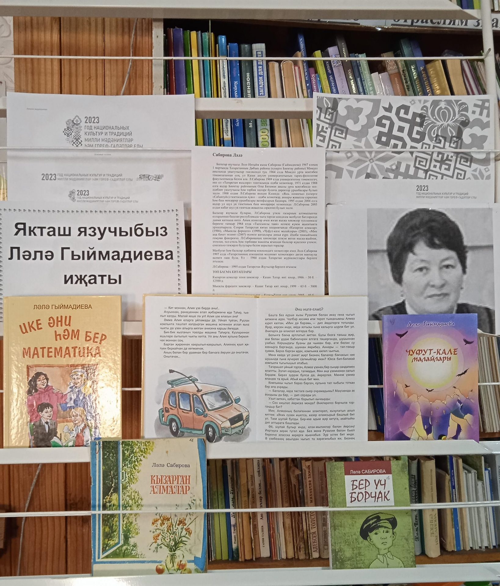 Ляля Нагимовна Сабирова (Гимадиева) родилась первого марта 1947 года в деревне Мемдель Высокогорского района РТ. После окончания Мемдельской средней школы дальнейшее образование получила в Казанском государственном университете. Потом, проработав 2 года в редакции газеты «Татарстан яшьләре», в течении 17 лет преподавала татарский язык и литературу в Большебитаманской средней школе Высокогорского района, одновременно являясь заместителем директора школы по воспитательной работе. Ляля Сабирова с 1997 года носит почётное звание «Заслуженный работник культуры Республики Татарстан», с 1995 года — член Союза писателей Татарстана. Начала печататься с 60-х годов XX века на страницах республиканских газет и журналов. Произведения Ляли Сабировой написаны с тонким знанием детской психологии, простым, но образным языком. Посетители библиотеки заинтересовались выставкой. Старшее поколение вспоминало Лялю Гимадиеву с теплотой в душе.