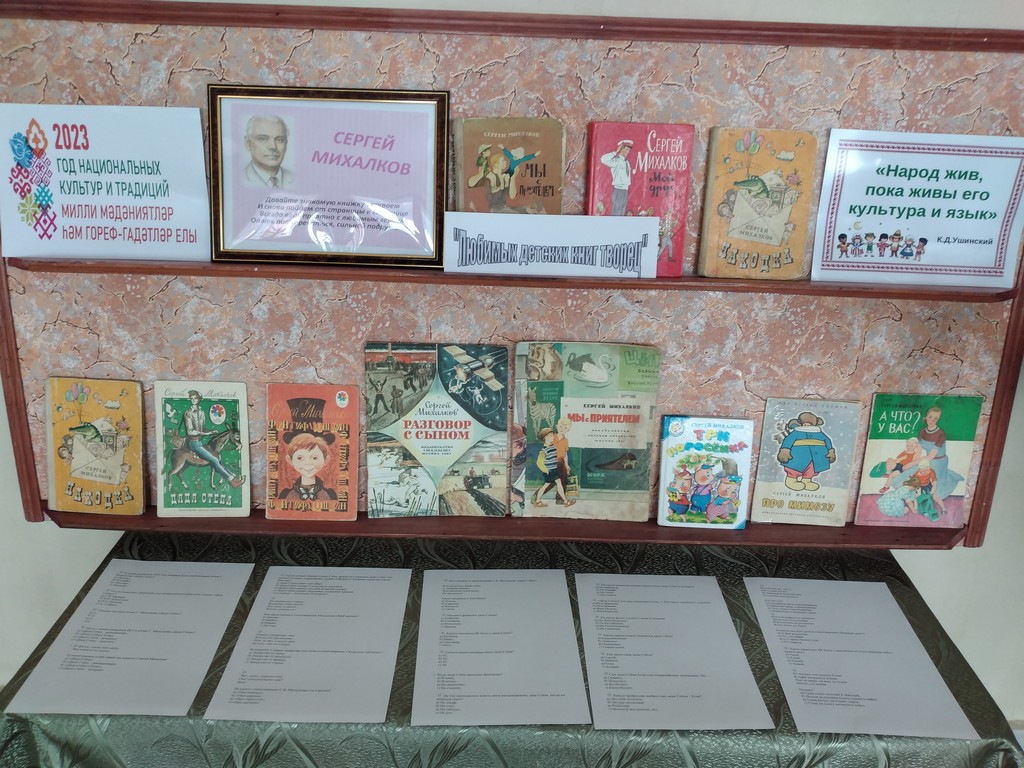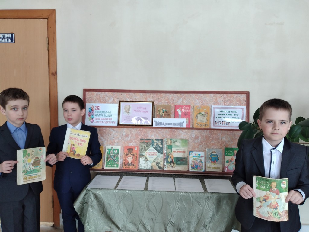 Идеями справедливости, доблести и чести пронизано все творчество Сергея Владимировича Михалкова. 13 марта исполняется 110 лет со дня рождения знаменитого писатели и поэта.  В Шуманской сельской  библиотеке  для юных читателей  прошло  мероприятие к  юбилею   Сергея Михалкова .  В начале мероприятия библиотекарь  рассказала  о биографии и творческом пути Сергея Михалкова. Ребята вспомнили  стихи, басни и сказки, написанные автором. Далее праздник продолжился викториной  по произведениям автора. Ребята отвечали на вопросы игры по разделам “Мультфильмы”, “Басни и стихи”, “Творческая”  по таким известным произведениям, как “Дядя Степа”, “Праздник непослушания”.  Оформлена  книжная выставка, в экспозиции  представлены книги из фонда библиотеки,  интересные и читаемые сегодня.