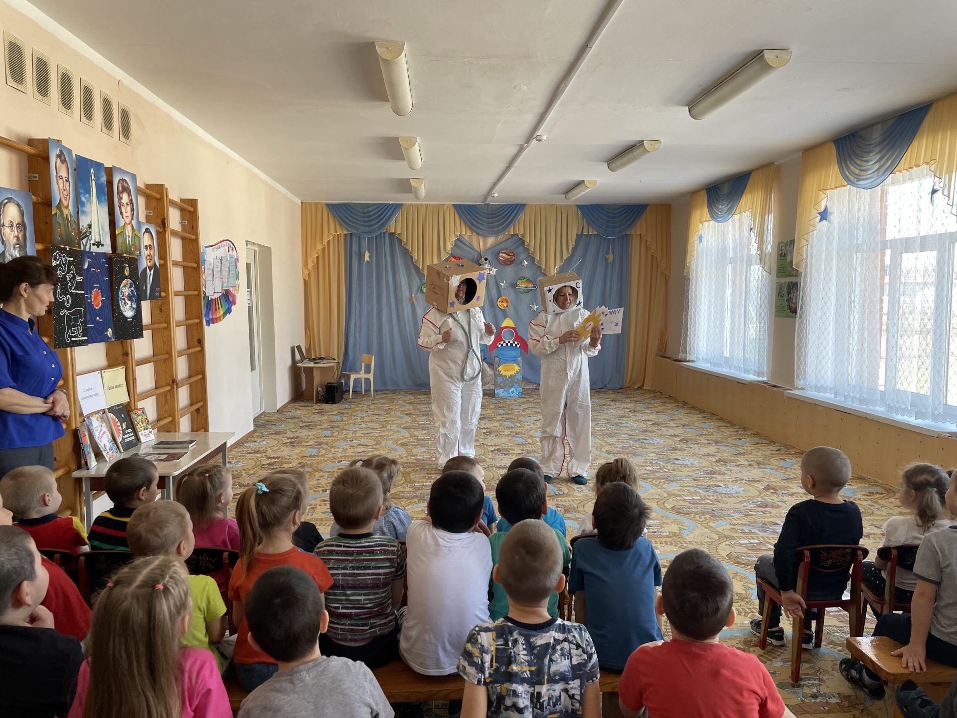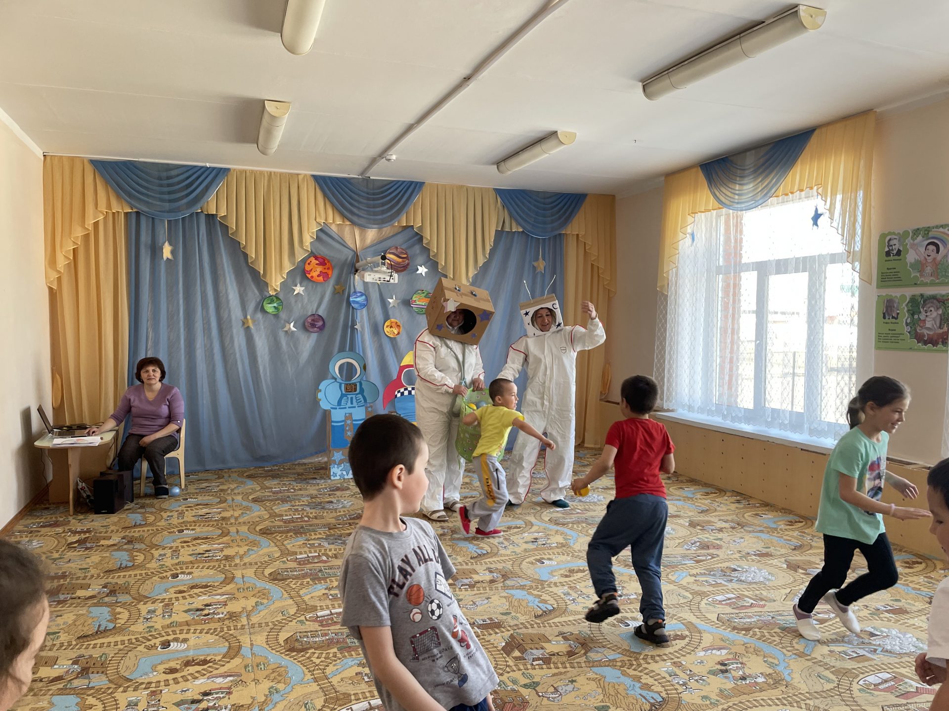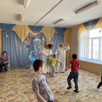 12 апреля день космонавтики. В Альдермышской сельской библиотеке для воспитанников садика «Умырзая» организовали тематический вечер “Звездам навстречу” На этом мероприятии детей познакомили, что такое космодром, космос, спутник, экипаж и приготовились к полёту. Для этого они собрали изображение ракеты (по командам) и ответили на вопросы: каким должен быть космонавт. Затем прозвучал сигнал старт! и все отправились в полёт. Во время полета дети отгадали «космические» загадки, вспомнили героев сказок, летающих на волшебных предметах и животных, поиграют в игру «Летает – не летает».