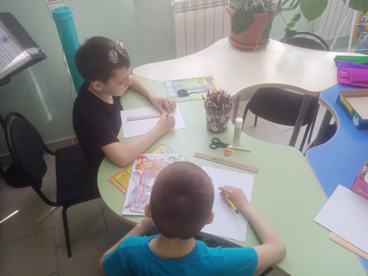 В Центральной детской библиотеке прошло очередное заседание литературно-творческой мастерской «Создай сказку»,  посвященное истории создания комиксов. Детям рассказали об одном из несомненных завоеваний культуры XX века – комиксах. В конце занятия дети стали на миг художниками и нарисовали комикс на тему супергерои.