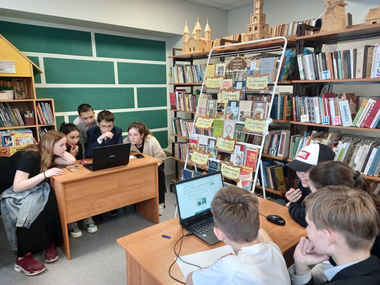 В читальном зале сельской библиотеки Бирюлинского зверосовхоза в рамках проекта «Пушкинская карта» для юношеской аудитории был проведен квиз-бук, посвященный писателям-юбилярам 2023 года. Команды «Литературный поиск» и «Тройка, семерка, туз» соревновались в конкурсах «Разминка», «Ребусня», «Найди пару», «Мультимедиа», «Фотовопрос». Участникам предстояло решить сложные кроссворды, логические головоломки, собрать пазлы. В ходе мероприятия ребята использовали свои знания по литературе, а также узнали много новой информации. По итогам всех конкурсов с отрывом в 2 балла победу одержала команда «Тройка, семерка, туз». Литературное мероприятие прошло весело и задорно, а главное – познавательно!