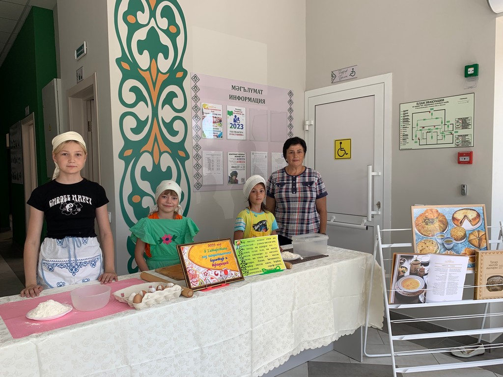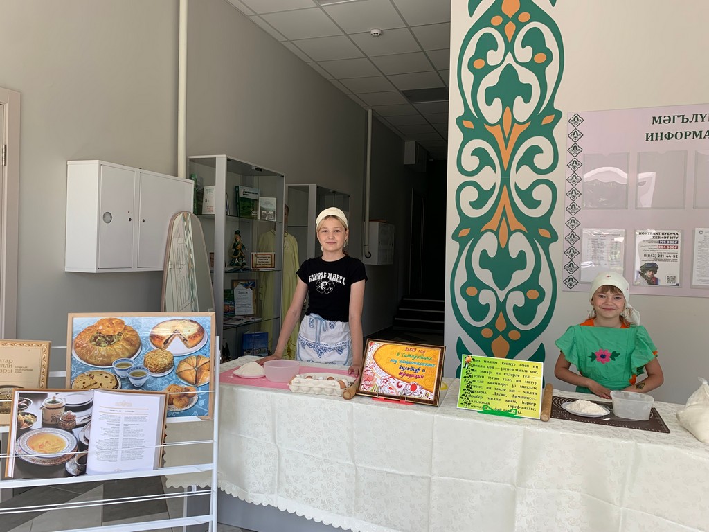 К мероприятию была оформлена книжно — иллюстративная выставка «Национальная кухня», возле которой библиотекарь провела обзор книг, знакомящих с культурой татарской кухни и искусством приготовления пищи.