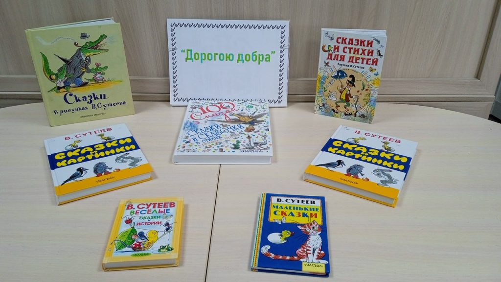 Владимир Сутеев – один из самых любимых детских писателей, художник-иллюстратор и режиссер-мультипликатор. Представленные на выставке книги: «Сказки В.Сутеева», «Сказки в картинках», «Мешок яблок», «Терем–теремок» и другие. Веселые, яркие истории до сих пор не оставляют равнодушными не только детей, но и взрослых. Они учат искренности и доброте, любви и пониманию в доступной и ненавязчивой форме.