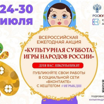 ЕЖЕГОДНАЯ АКЦИЯ «КУЛЬТУРНАЯ СУББОТА.ИГРЫ НАРОДОВ РОССИИ ДЕТЯМ», направленная на популяризацию традиций народов России, в этом году посвящена традиционным детским играм.