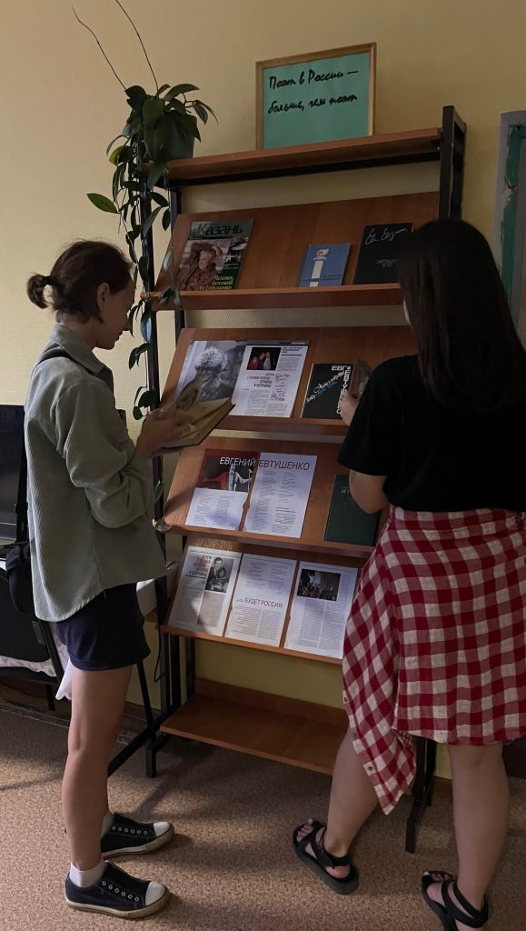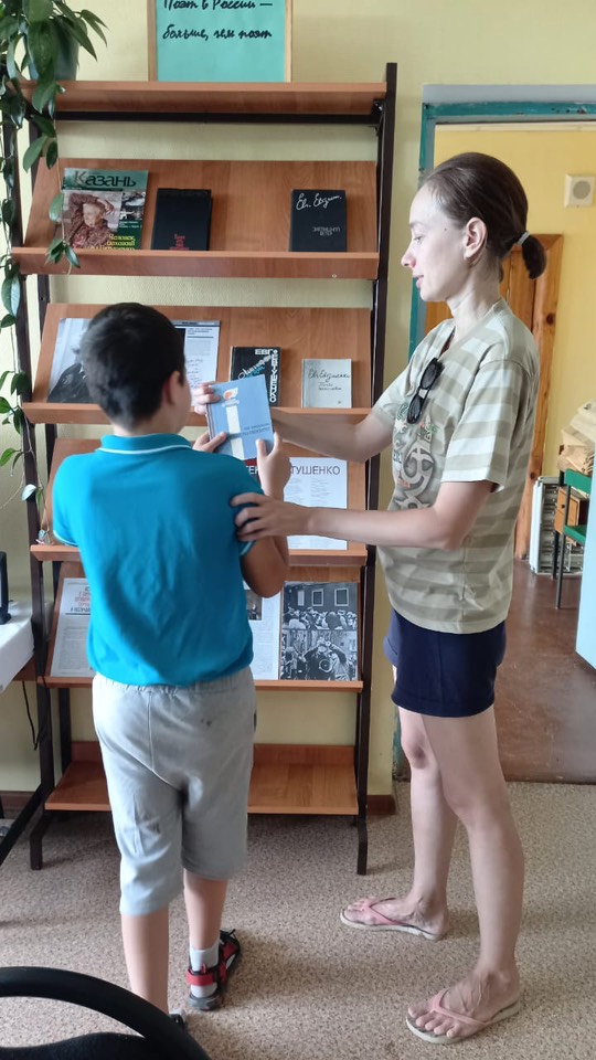 В Шапшинской сельской библиотеке состоялось мероприятие «Кумир шестидесятых», посвящённое юбилею Евгения Евтушенко. Его неповторимая поэзия, наполненная глубоким смыслом и разнообразная, как сама жизнь, нашла отклик не только в сердцах жителей нашей страны, но и далеко за её пределами. В программе – обзор книжной выставки «Поэт в России больше, чем поэт» произведений юбиляра, просмотр фильмов, созданных самим Евтушенко, а также обсуждение его творчества и чтение стихотворений. На протяжении всего мероприятия звучали песни на стихи поэта.