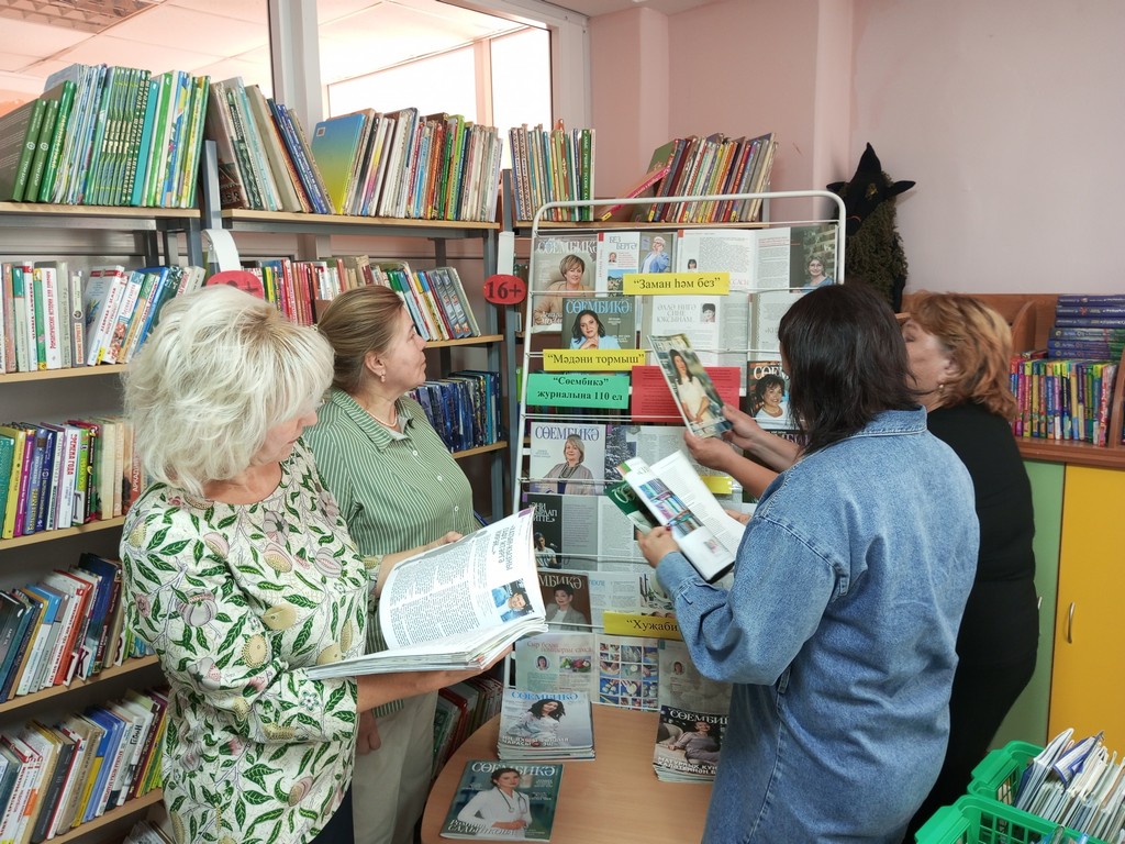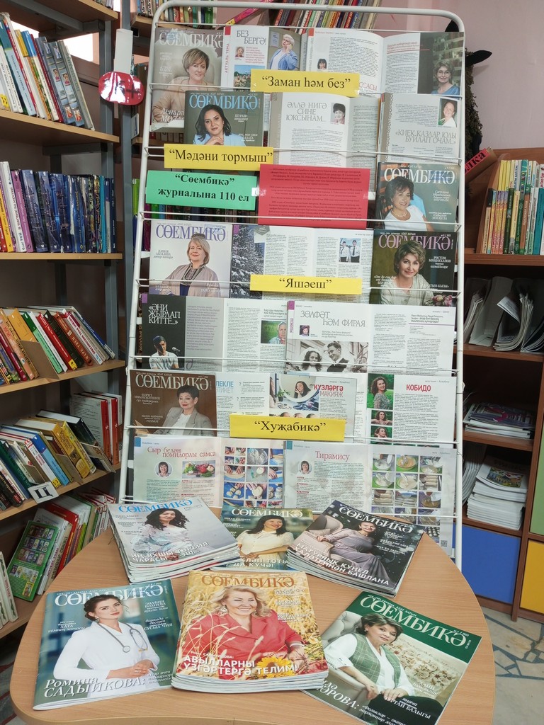 К 110 — летию журнала «Сөембикә» в Высокогорской сельской библиотеке оформлена выставка журнала. Журнал «Сөембикә» начал издаваться с 1913 года на татарском языке. А с 1926 по 1991 год журнал выходил под названием «Азат хатын». Это первый журнал о моде на татарском языке. Он быстро завоевал популярность, а в 1930-е гг. его тираж достиг 15 тысяч экземпляров. Библиотекарь рассказал, что в журнале публикуются статьи, посвященные трудовой и общественной деятельности женщин, очерки, рассказы на семейно-бытовые темы, лирические стихи, поэмы, печатаются советы по домоводству и здоровому образу жизни. На выставке представлены новые журналы под названием «Сөембикә».