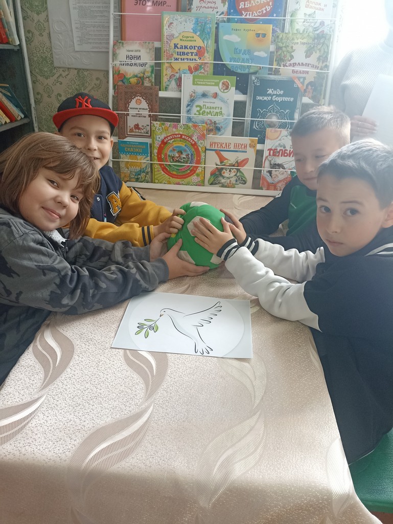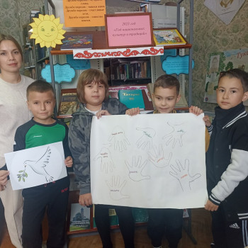В Берёзкинской библиотеке с читателями провели игру- беседу «Как прекрасен этот мир». В начале мероприятия ознакомились с книгами, которые расположились на выставке. Далее библиотекарь рассказала об истории возникновения праздника, о символе мира- изображение голубя, держащего в клюве оливковую ветвь. Мероприятие продолжилось в игровой форме. Дети передавали «волшебный мяч» с добрыми пожеланиями друг-другу. Они пожелали доброту, веселье, хорошие оценки и, конечно же, мирное небо над головой, чтобы никогда не было Войны. Следующая игра заключалась в том, чтобы оставить добрые пожелания не только друг- другу, а всей планете. Для этого, на ватмане обвели свои ладошки и внутри написали каждый свое желание. В завершении мероприятия, библиотекарь раздала «символ мира», чтобы всегда дома у юных читателей была гармония, взаимопонимание и МИР…