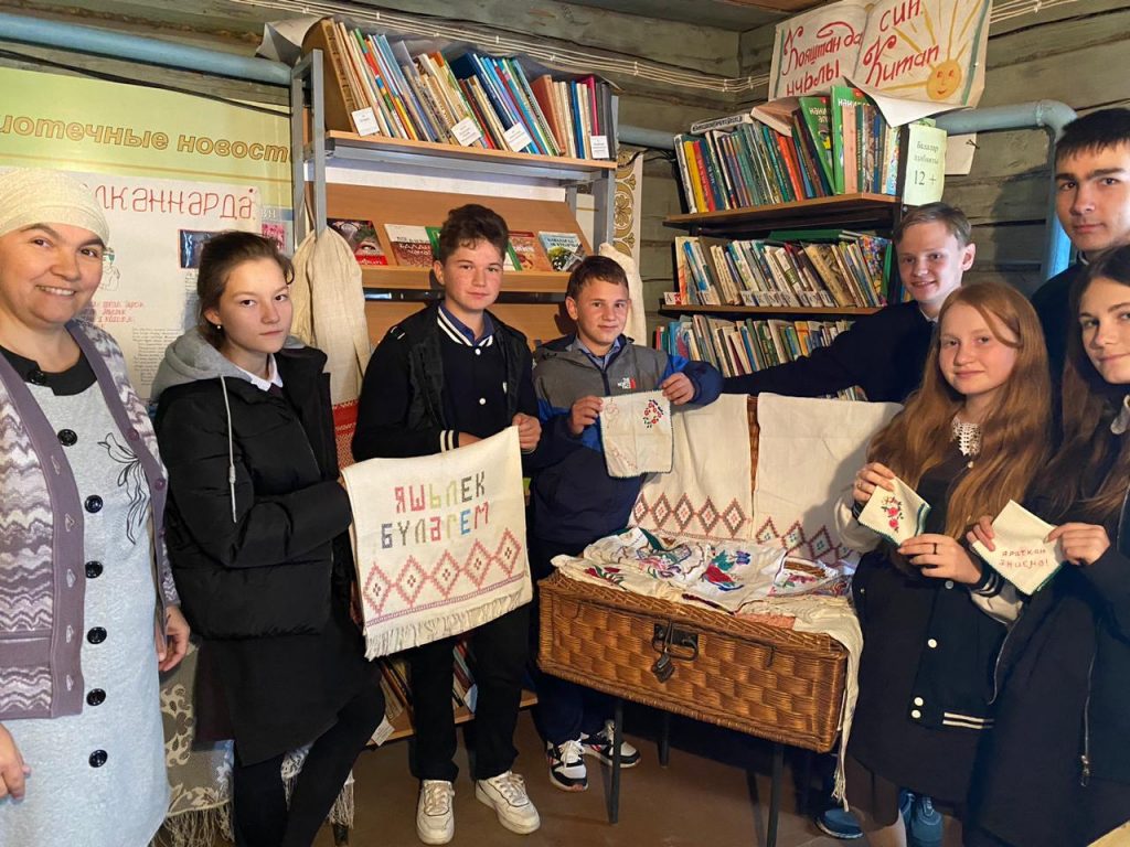 На выставке были представлены вышитые полотенца, скатерти, национальные костюмы, книги, фотографии. Библиотекарь рассказала читателям об этих ценных реликвиях.