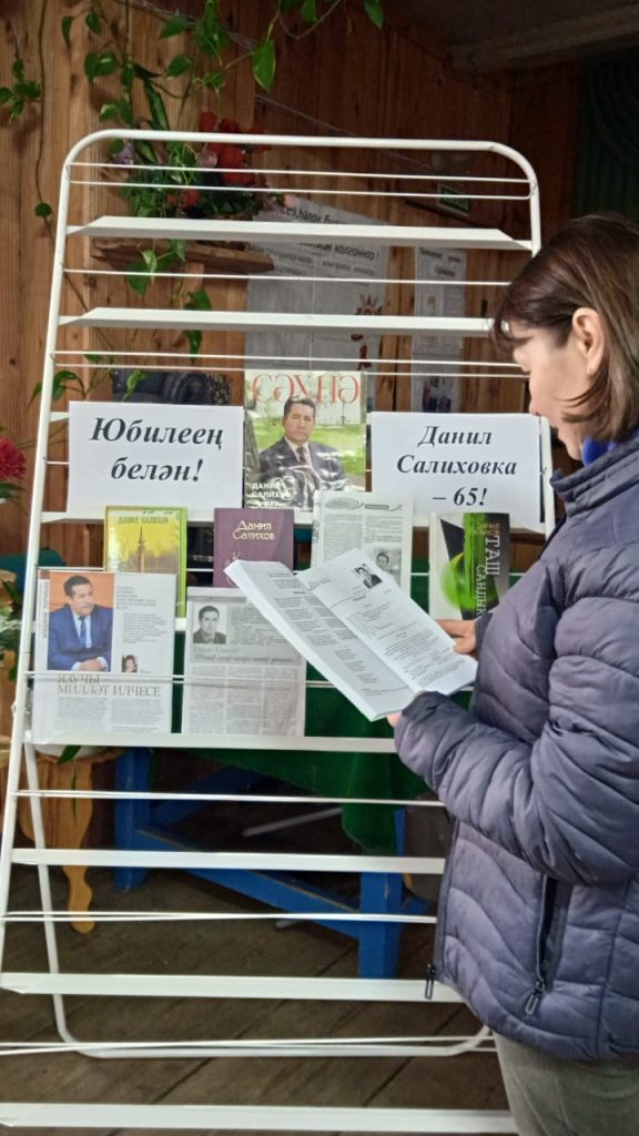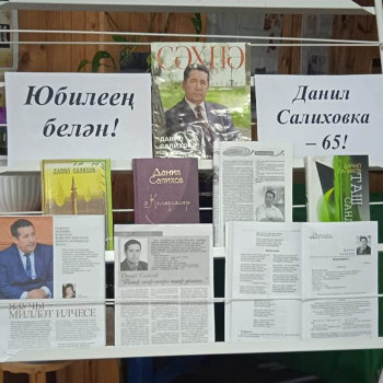 Салихов Данил Хабибрахманович родился 7 октября 1958 года в поселке совхоза имени Кирова Актанышского района. К этой дате в Малобитаманском пункте выдачи книг оформили книжную выставку, посвященную 65-летию драматурга, на которой представили литературу о жизни и творчестве писателя, его портрет, журналы «Сююмбике», «Идель» разных лет выпуска с интервью с драматургом, а также его произведения, имеющиеся в фонде. Библиотекарь провела обзор книжной выставки, рассказала посетителям биографию писателя. Пьесы известного драматурга Данила Салихова на протяжении многих лет живут на сцене яркой, современной жизнью, украшая репертуары многих театров по всей России.