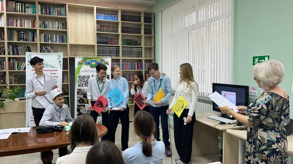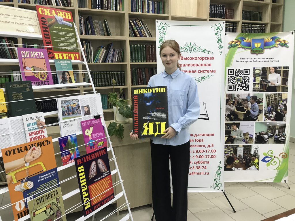 В читальном зале центральной библиотеки состоялось мероприятие «Почему люди курят?» с целью формирования у юношества сознательной установки на здоровый образ жизни, на неприятие вредных привычек, воспитание ответственного отношения к своему здоровью. Библиотеку посетили учащиеся 9М класса ВСОШ №1. Главной задачей стало привлечение подростков, молодёжи к книгам, популярной периодике, формирующих ценности здорового образа жизни, а также способствовать снижению распространённости табачной зависимости среди подростков. На выставке для присутствующих была представлена литература и наглядная информация о том, какой вред здоровью оказывает курение. Состоялась беседа об огромном вреде курения ВЕЙПов и других заменителей сигарет. Ребята приняли участие в театрализованном представлении, благодаря которому сами же и рассказали что происходит с внутренними органами, когда они сталкиваются с вредными веществами. Юнусов Амир был Доктором, Манвелян Артур – Больным, роль Желудка и Язвы исполнили Юдин Дмитрий и Гильмутдинова Ильсия, персонаж Сердце воплотила Акчурина Амина, Мозг Смердова Дарина, Файзрахманову Айназу досталась роль Легкие. Все они блестяще и артистично справились со своими ролями и получили поощрительные призы.