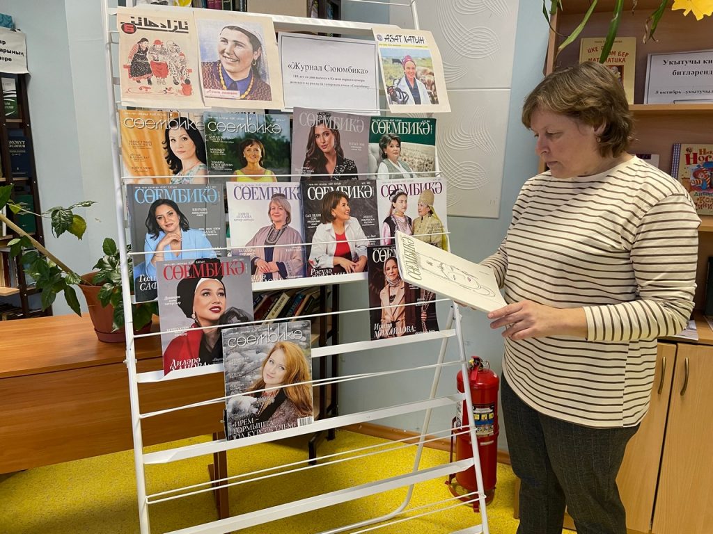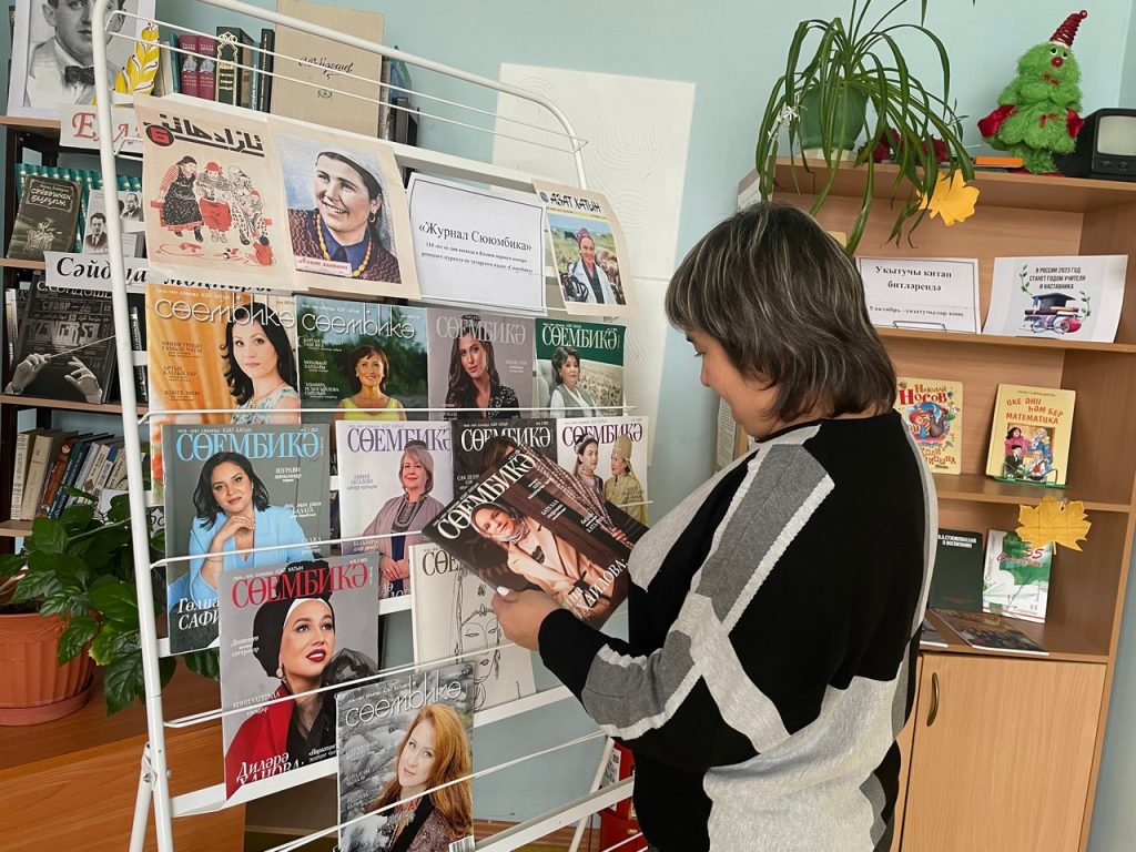 Журнал «Сююмбикэ» начал издаваться с 1913 г. на татарском языке. А с 1926 по 1991 год журнал издавался под названием «Азат хатын». Главной обложкой и символом журнала стала зарисовка царицы Сююмбике, созданная художником-графиком Баки Урманче и подаренная им редакции журнала в 1991 году. В библиотеке оформили книжную выставку, приуроченная к 110-летию первого выпуска журнала «Сююмбике». На этой выставке были представлены исторические сведения о журнале и сам журнал. Выставка посетили разновозрастные группы читателей.