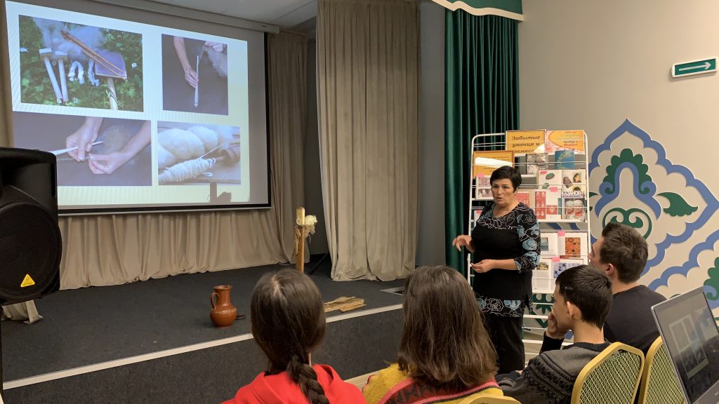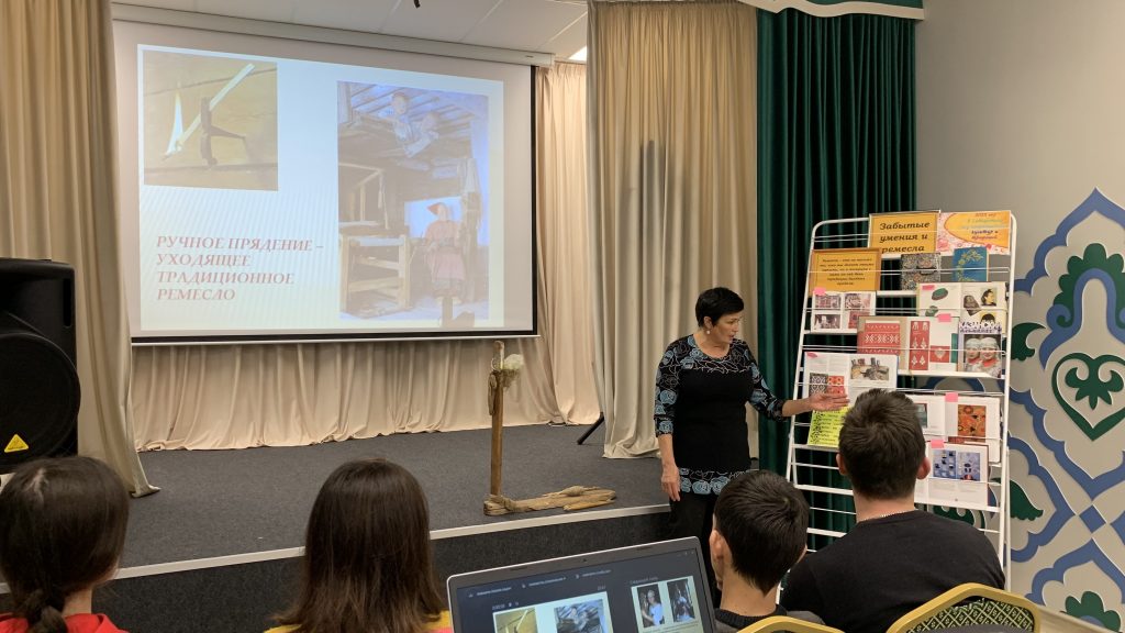 26 октября в Татаро-Айшинской сельской библиотеке, в рамках программы «Пушкинская карта» прошел  познавательный час «Мир старинных ремесел». Библиотекарь познакомила ребят с уходящим традиционным женским народным ремеслом – ручным прядением шерсти, рассказала об истории прядения, традициях, обычаях, о том, как готовится шерсть для прядения, об орудиях труда – прялке, веретене, показала, как при помощи этих домашних орудий из шерсти получается нить, из которой можно потом связать любую нужную вещь. Рассказ сопровождался слайдами презентации, с помощью которых присутствовавшие могли подробно познакомиться с искусством прядения. Вниманию ребят была представлена книжная выставка «Забытые умения и ремесла», с помощью которой библиотекарь познакомила с литературой по народно-прикладному искусству Татарстана.