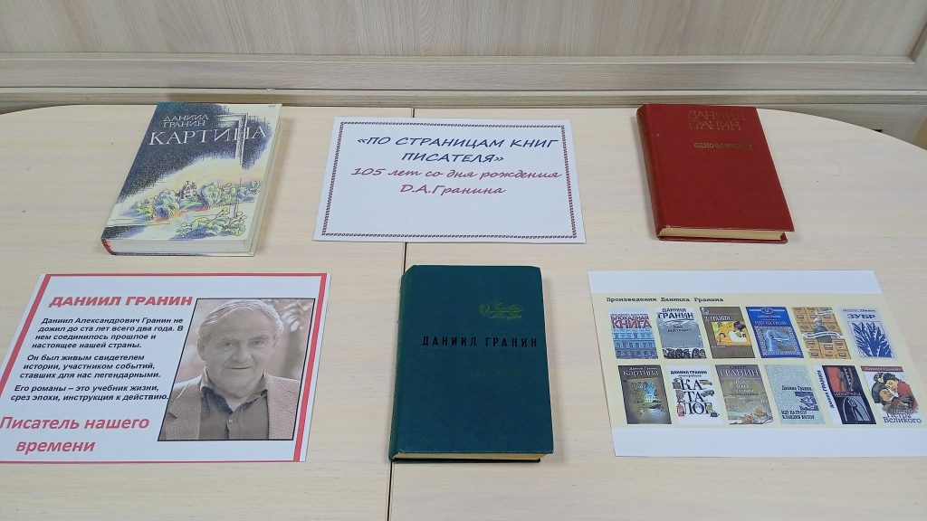 27 января в России отмечается памятная дата – снятие блокады Ленинграда. Среди защитников города был Даниил Александрович Гранин. 1 января исполнилось бы 105 лет со дня рождения советского и российского писателя, киносценариста, общественного деятеля, участника Великой Отечественной войны Даниила Александровича Гранина (1919–2017). Это уникальный человек запомнился как Герой Социалистического Труда, лауреат Государственной премии СССР, премии Президента РФ и премии Правительства РФ за вклад в отечественную литературу, а также как почетный гражданин Санкт-Петербурга. Биография Даниила Гранина, его творческий путь совпали с историческими вехами страны. Книжная выставка из фонда, посвященная творчеству Д.Гранина, оформлена в Чернышевской сельской модельной библиотеке.