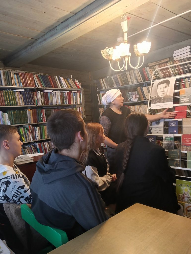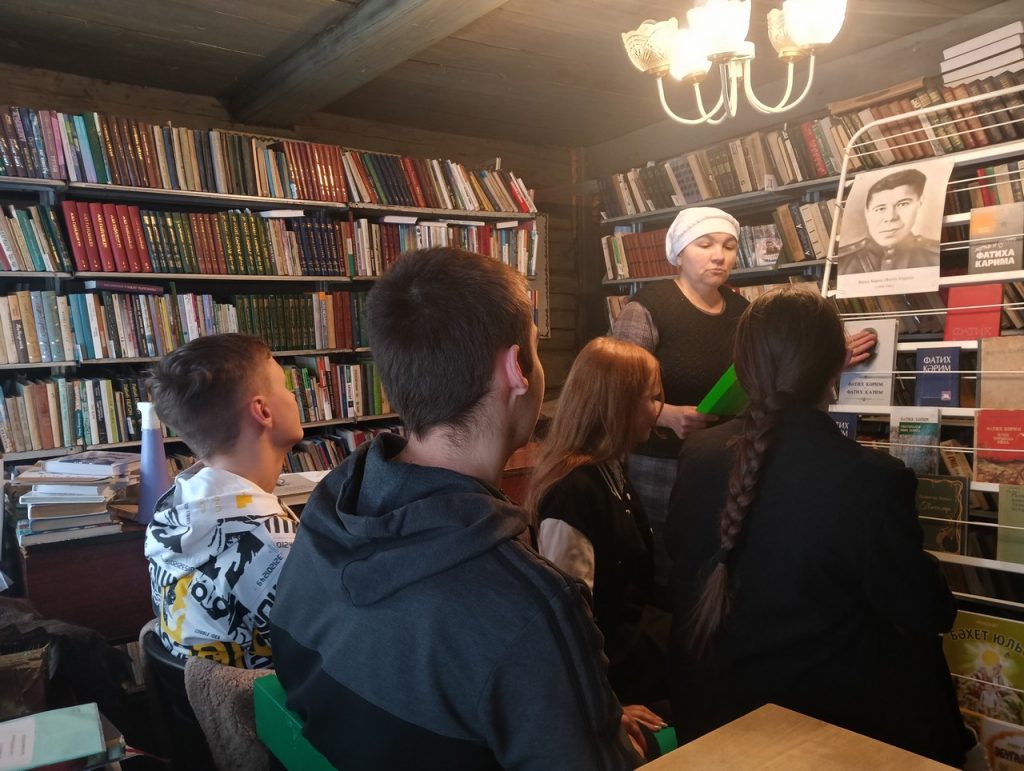 Саинской сельской библиотеки ко дню рождения поэта Фатиха Карима была оформлена книжная выставка. На выставке были представлены и лирические, и патриотические стихи поэта. Библиотекарь рассказала о жизни и творчестве автора. Выставка представлена для воспитания у подрастающего поколения бережного и трепетного отношения к родному языку.