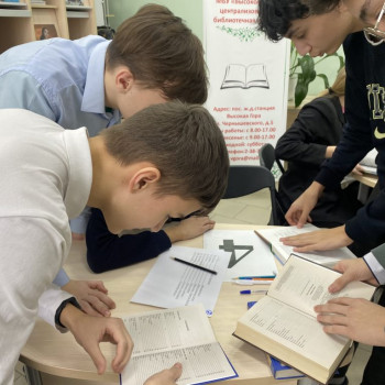 Учащиеся 9 «М» класса ВСОШ №1 были приглашены в центральную библиотеку на интеллектуально-развлекательную командную игру КВИЗБУК. Книжная викторина прошла в рамках программы Пушкинская карта и состояла из восьми заданий разной сложности. Старшеклассники разделились на 4 команды и придумали названия, девизы. Так в состязания вступили команды: «Титаник», «Универсам», «От горя умные» и «Победа». В каждом игроки выполняли литературные задания или отвечают на вопросы связанные с писателями и их произведениями. Это слайд вопросы, вопросы перевёртыши. Задания КВИЗБУКа «Верю – не верю», «Что. Где. Когда», «Закончи цитату», «РИСК» и другие выявили кто из участников настоящий читатель. Разумеется, это не тот, кто научился читать с определённой скоростью, а тот, кто получает удовольствие от чтения, полноценно воспринимает и понимает прочитанное. В литературном состязании победу одержали две команды «Победа» и «Титаник» с равным количеством баллов, но дополнительные вопросы определили одного победителя со звучным названием «Победа».