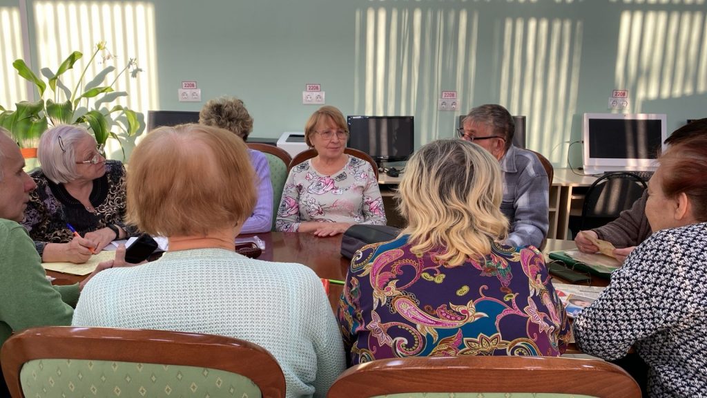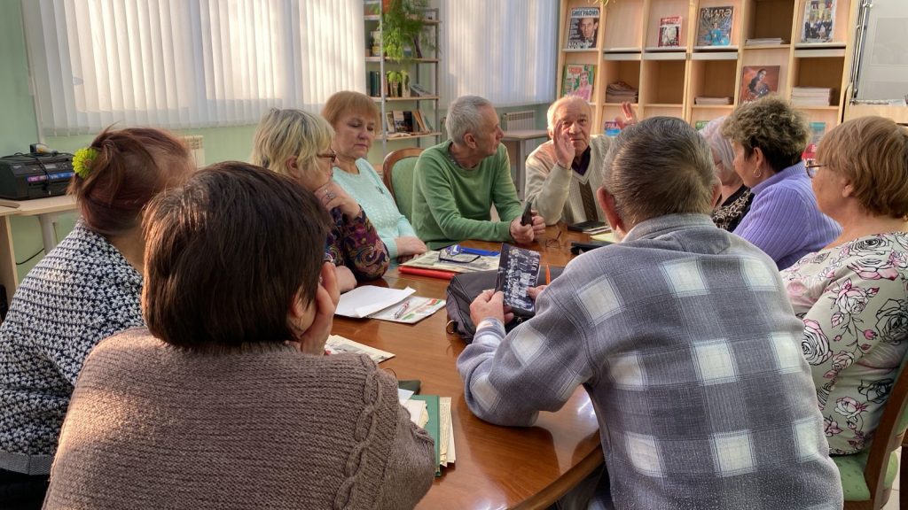 В читальном зале центральной библиотеки состоялось краеведческое мероприятие для Серебряных волонтёров. Встреча прошла в рамках Университета третьего возраста. Участники встречи беседовали о земляках, погибших в годы Великой Отечественной войны, а также о тех, о ком написано в книге «Эхо войны». На мероприятии обсуждалась тема «Воспоминания о школьной жизни».