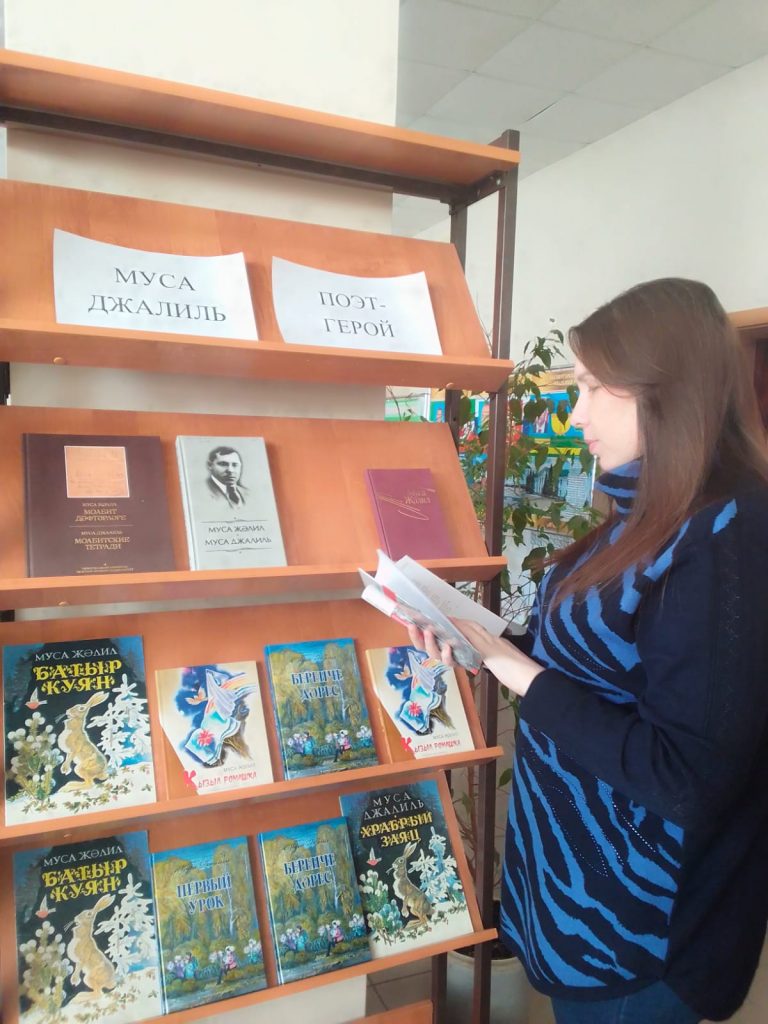 У каждого народа есть свои герои, которые живут в памяти и служат примером для подрастающего поколения. Одним из таких героев является татарский поэт Муса Джалиль — герой Советского Союза, лауреат Ленинской премии, отдавший свою жизнь за свободу и независимость нашей Родины. В Чепчуговской сельской библиотеке стало доброй традицией  ежегодное проведение мероприятий, связанных с памятной датой.Вои и сегодня была оформлена книжная выставка «Муса Джалиль-поэт-герой», на которой были представлены такие книги как: «Моабитские тетради», «Избранное», «Сайланма әсәрләр»,«Кызыл ромашка» и многое другое.Прошли громкие чтения.