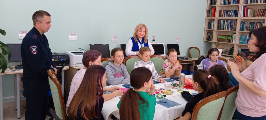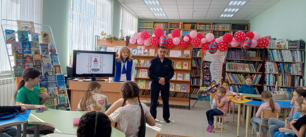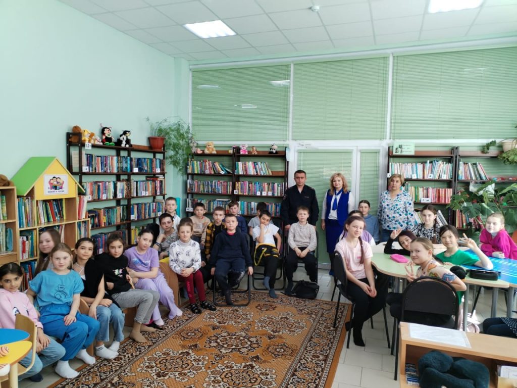 В Центральной детской библиотеке состоялась встреча с начальником ОГИБДД Отдела МВД России по Высокогорскому району майором полиции Асадуллиным А.Р. и начальником ГБУ «Безопасность дорожного движения» по Высокогорскому району Сафиуллиной  А. Р. Айрат Ринатович  подробно рассказал детям, как вести себя на улице, о светоотражающих элементах на одежде. Привел примеры того к чему приводят нарушения правил дорожного движения. Дети и сами были активными участниками встречи, задавали массу вопросов нашим гостям.