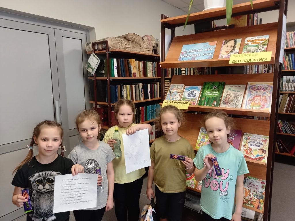 В настоящее время в фондах библиотек республики наблюдается большой рост доли татарской детской литературы. Татарское книжное издательство ежегодно выпускает множество красочных изданий. Для продвижения новых книг читателю, сельская библиотека Бирюлинского зверосовхоза подготовила для ребят обзор выставки, раскрывающий богатство книжного фонда национальной литературы. Очень удобно, что книги печатаются на двух языках: русском и татарском. Это повышает доступность изданий для читателей всех национальностей, проживающих в поселке. В ходе мероприятия дети ознакомились с выставкой, разгадали кроссворд по татарским детским книгам. Вспомнили следующие произведения: «Болтливая утка», «Водяная», «Три дочери», «Шурале», «Камыр-батыр» и другие.