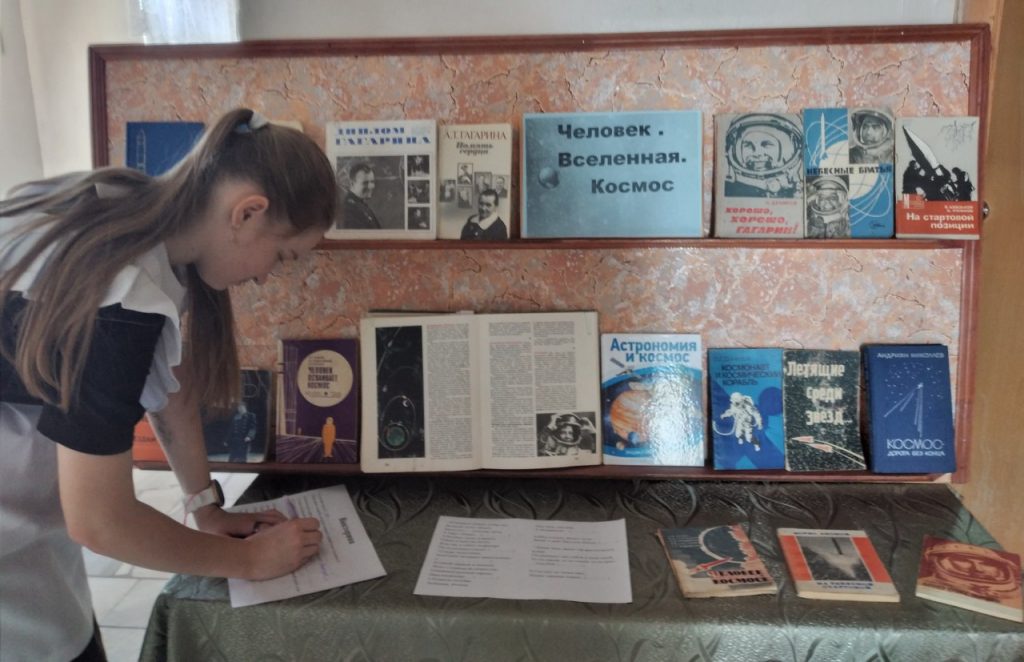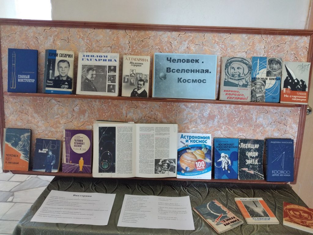 12 апреля в день космонавтики Шуманская сельская библиотека представила книжную выставку. Читателям и гостям библиотеки была представлена подборка книг и журналов, рассказывающих о первооткрывателях космической эры, о героях-космонавтах, смело покоряющих просторы вселенной. На выставке была представлена научно-популярная литература о космосе, была показана история развития космической отрасли. Особое внимание на выставке было уделено материалу о жизни и космических свершениях космонавтов отечества: Ю.А. Гагарина, Г.С. Титова, А.Г. Николаева, В.М. Комарова и других, а также о том кто построил первую ракету – конструктор С.П. Королев