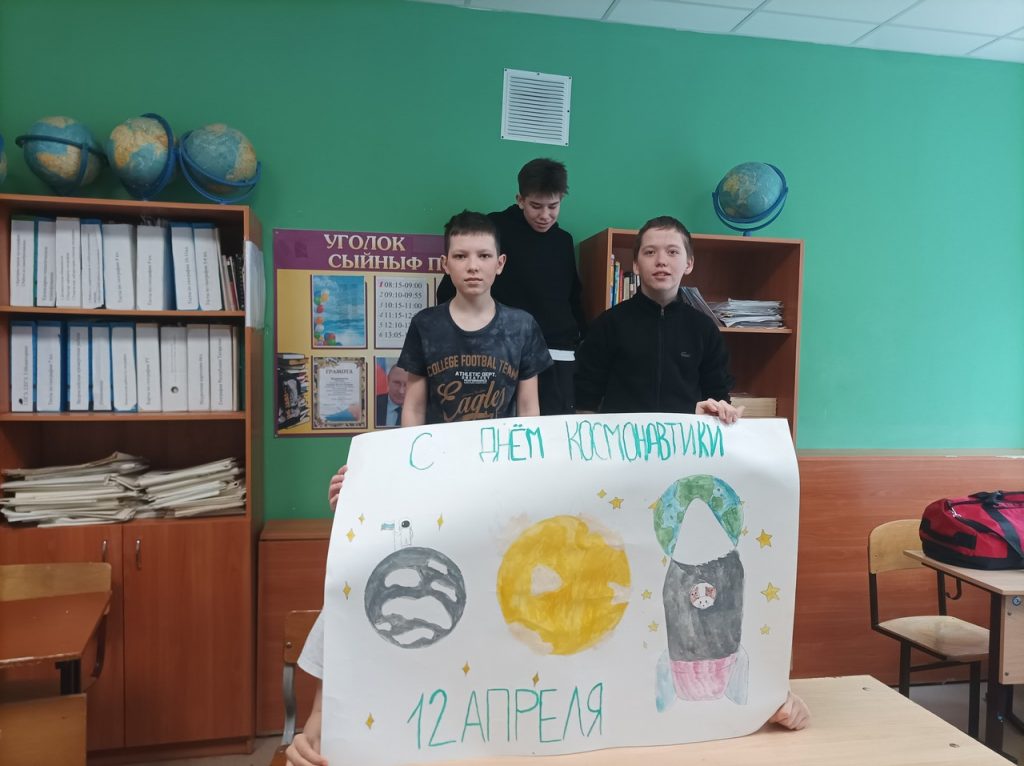В Озерной школе библиотекарем Шигалинской сельской библиотеки было организовано мероприятие по созданию плаката ко Дню космонавтики. Ребятам была проведена викторина по знанию исторических фактов полета Героя Юрия Алексеевича Гагарина. Ребята нарисовали планеты и ракету, Мальчикам было предложено собрать ракету из конструктора лего.