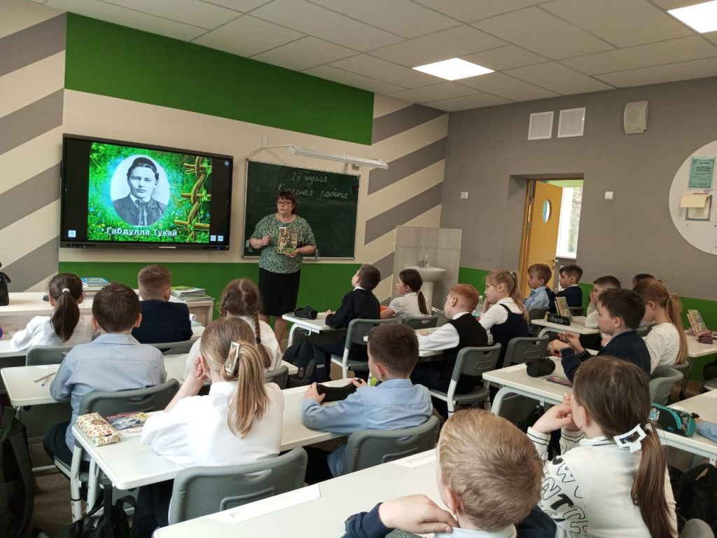 Высокогорская сельская библиотека совместно с ВСОШ №2 провела громкие чтения «Читаем стихи Г.Тукая», посвящённый 138 – летию татарского поэта Габдуллы Тукая. Библиотекарь рассказала ребятам о тяжелом детстве поэта, о его жизни и творчестве. Ребята услышали много нового из его биографии, посмотрели презентацию о великом сыне татарского народа, так же был показан мультфильм «Шурале» созданный в мультстудии библиотеки. Ученики 3 «В» класса рассказали стихи Г. Тукая. А в конце мероприятия ребята с удовольствием спели песню «Туган тел», которая стала гимном татарского народа.