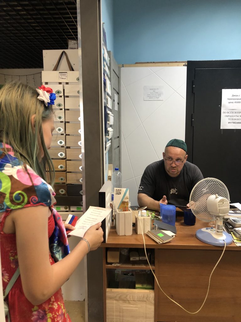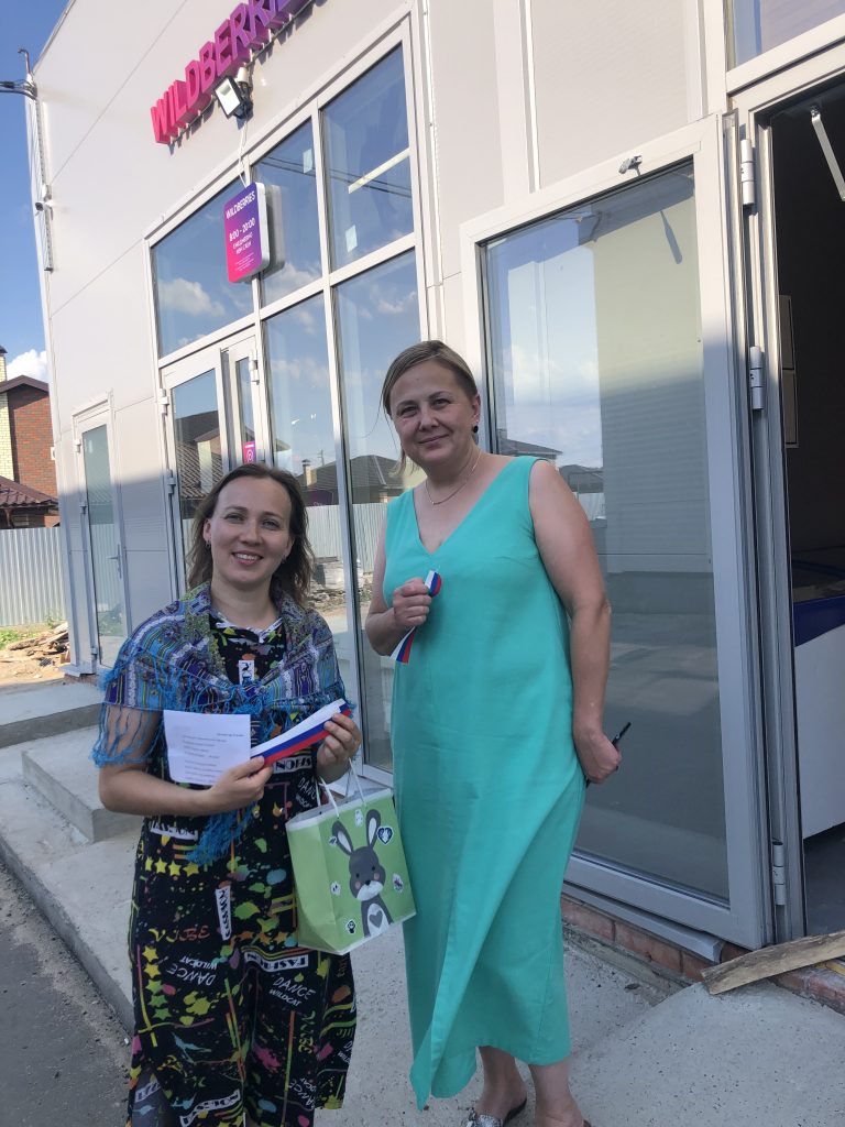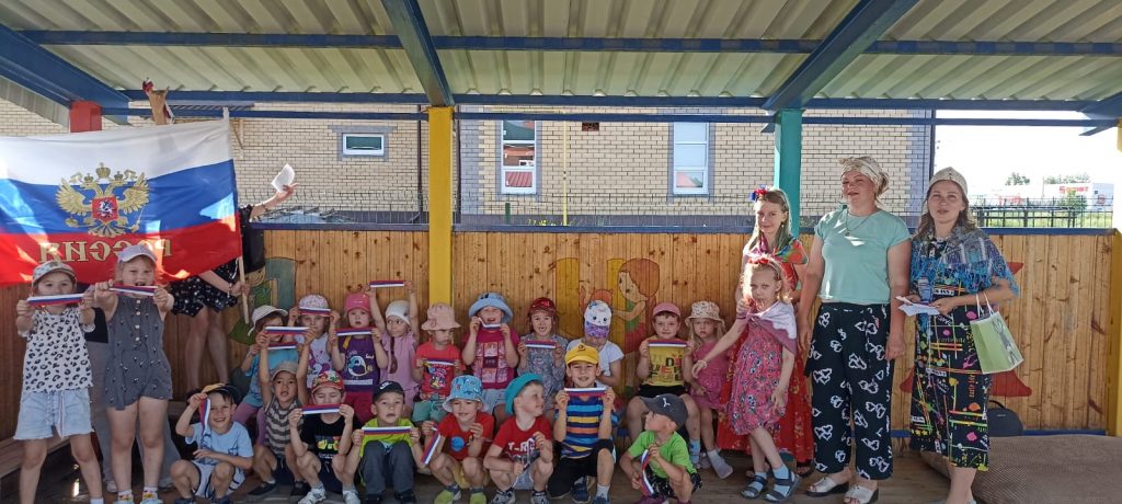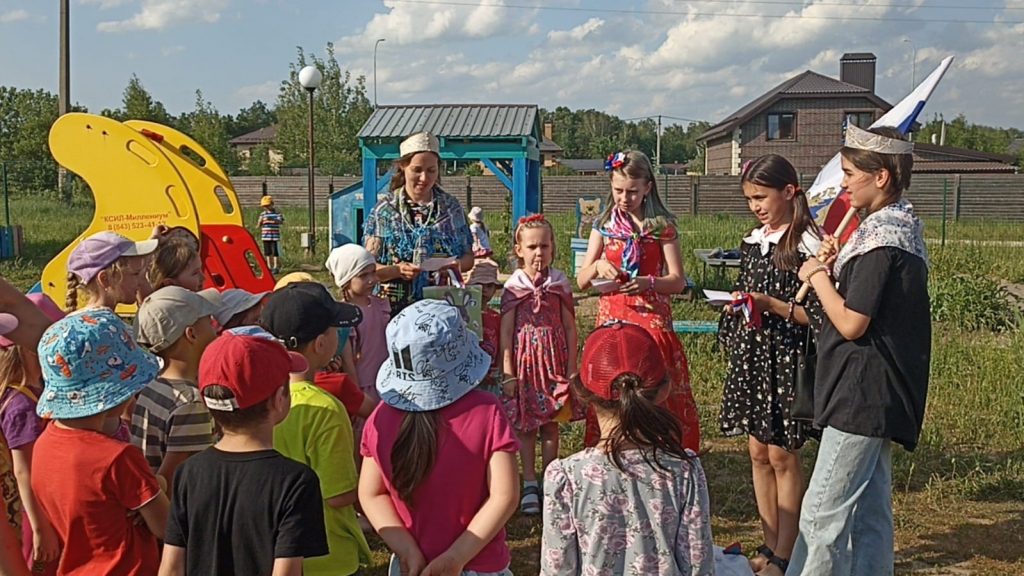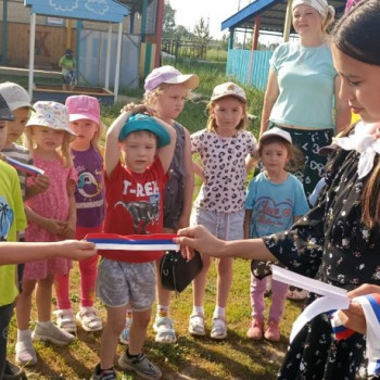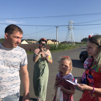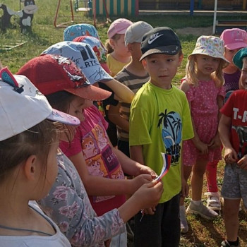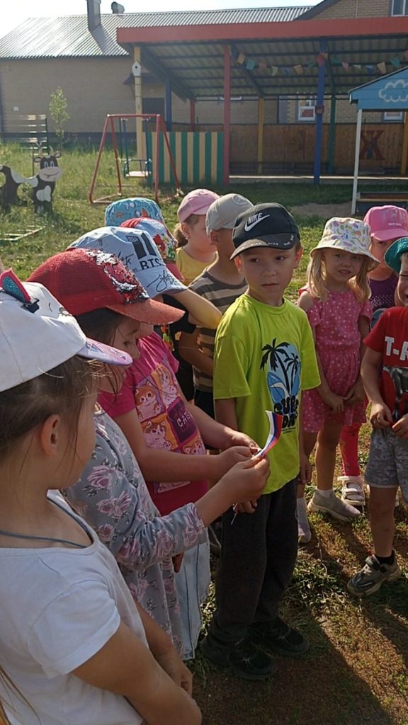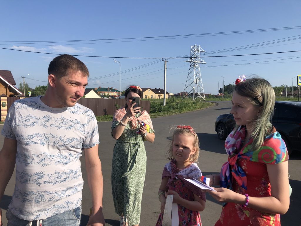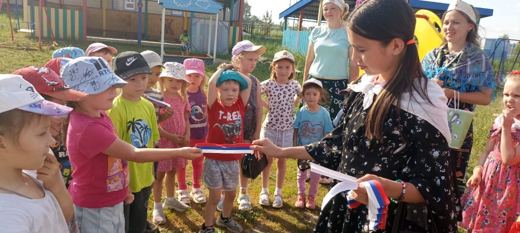 Организаторы мероприятия загадывали загадки с символами России жителям села, за правильный ответ участники получали ленточку с флагом России.