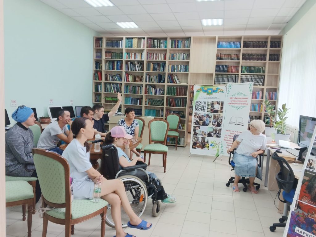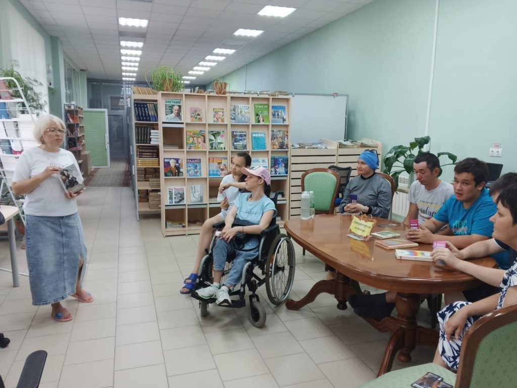 В центральной библиотеке состоялась встреча с группой дневного пребывания для взрослых инвалидов из КЦСОН «Эмет». Была оформлена тематическая книжная полка – «Семья это самое тёплое место на земле». Взяв книги с выставки, присутствующие начали беседу о том, что с семьи начинается жизнь человека, что в семье происходит формирование его как гражданина. Семья – источник любви, уважения, солидарности и привязанности, то, на чём строится цивилизованное общество, без чего не может существовать человек. Для мероприятия были подготовлены интерактивные модули в программе LearningApps. Все приняли активное участие в тематических заданиях: «Моя семья», «Важные слова», «Как назвать родственника», «Семейный кроссворд» и другие. Также подопечные «Эмет» поделились своими секретами семейной жизни.