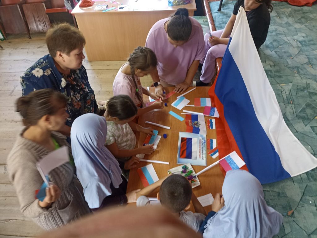 В России ежегодно 22 августа отмечается День Государственного флага Российской Федерации. День Российского флага – это праздник всех поколений россиян, дань уважения истории великой страны. Трехцветный стяг неразрывно связан со становлением Российского государства, он стал символом военных побед и достижений. Учрежден Указом Президента Российской Федерации от 20 августа 1994 года” о дне Государственного флага Российской Федерации”. В честь этого праздника в Суксинской сельской библиотеке совместно сотрудником Дома культуры была организована беседа «Три цвета флага». В ходе беседы библиотекарь рассказала об истории возникновения этого праздника и о том, что означают цвета флага, из цветной бумаги сделали флажки России.