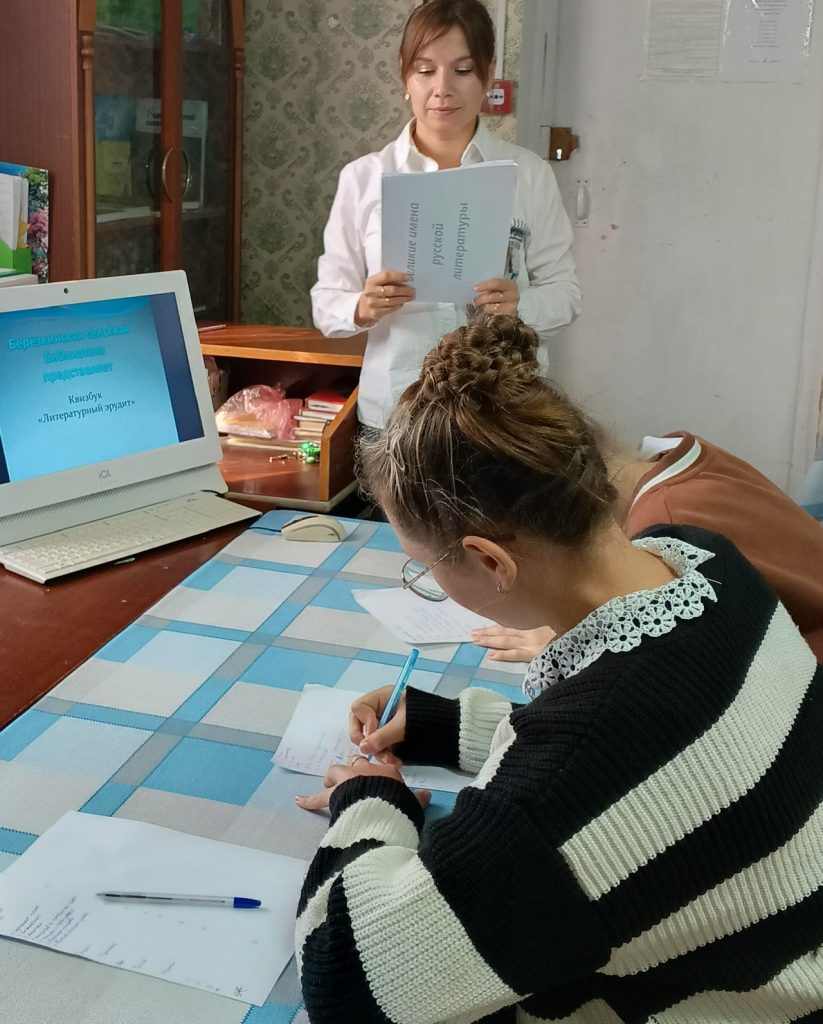 Библиотекарь Берёзкинской сельской библиотеки в рамках проекта «Пушкинская карта» провела литературно-интеллектуальную командную игру. Мероприятие прошло в форме викторины. Участники мероприятия выполняли литературные задания и отвечали на вопросы связанные с писателями и их произведениями, также в пути их ожидали интересные раунды: «Открывающиеся картинки», «Названия-перевёртыши», «Верю-не верю», «Что? Где? Когда?», «Закончи цитату».