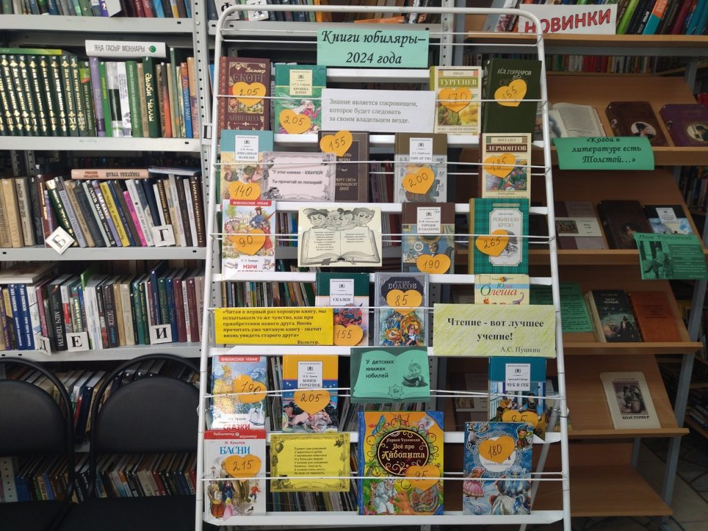 Юбилярами в мире литературы могут быть не только известные поэты и писатели, но и книги. Высокогорская сельская библиотека провела обзор книжной выставки посвященной книгам-юбилярам. Произведения, созданные много лет назад, остаются востребованными и в настоящее время, не теряя своей популярности среди читателей. В 2024 году много книг великих писателей всего мира празднуют свои круглые даты. Юбилей отмечают всеми любимые книги: «Сказка о золотом петушке» и повесть «Пиковая дама» А. С. Пушкина, комедия «Горе от ума» А. С. Грибоедова, романы «Братья Карамазовы» Ф. М. Достоевского, «Обломов» И. А. Гончарова, «Приключения Оливера Твиста» Ч. Диккенса и многие другие. Беседуя с детьми, библиотекарь рассказывала о книгах Пушкина и Ершова, Крылова и Чуковского. 295 лет назад Даниэль Дефо написал своего знаменитого Робинзона Крузо, 85 лет как А.Волков придумал Волшебника Изумрудного города. Дети с интересом слушали рассказ о книгах и после обзора смогли взять их для чтения.