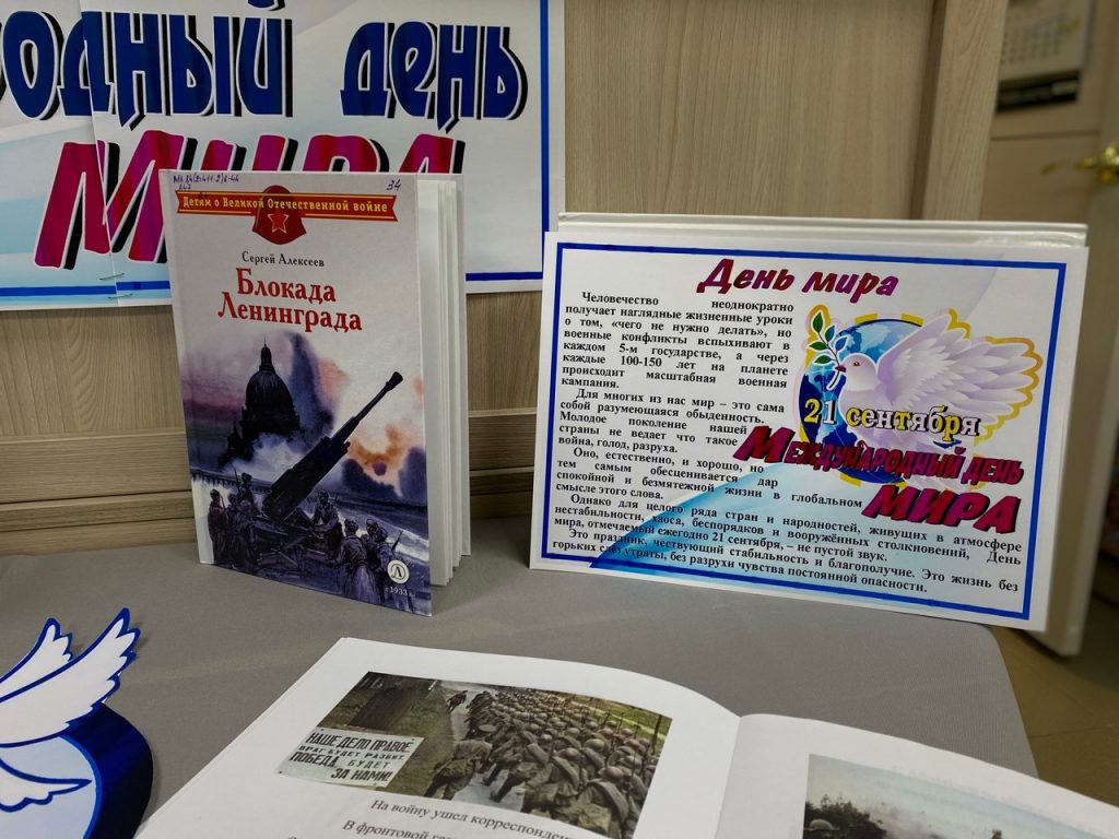19 сентября в Чернышевской сельской модельной библиотеке было подготовлено мероприятие «Голубь мира» посвященное Дню мира. Были приглашены читатели. Учащиеся мероприятия узнали, об истории появления, праздника и о его символе — белом голубе. Далее были затронуты темы когда наша страна Россия переживала тяжелейшие испытания во время войн и столкновений. Была организована книжно-иллюстративная выставка, и читатели могли ознакомиться со стихами о тех страшных временах.