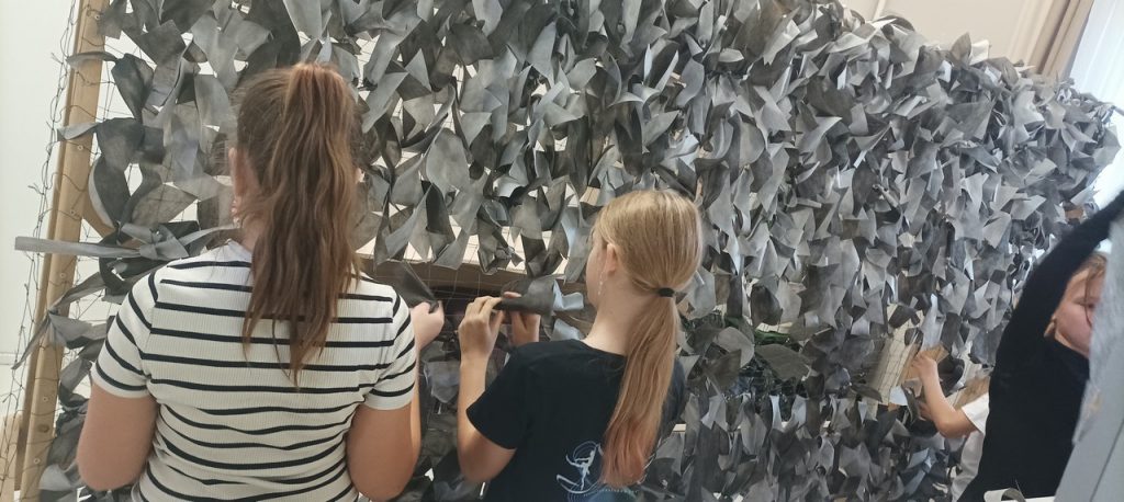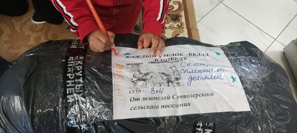 Всего 6 сетей было связано за сентябрь месяц читателями, в том числе учащимися 10 -11 классов. Все плетение маскировочных сетей сопровождалось беседами о патриотическом воспитании, о важности поддержания солдат СВО, о любви к Родине.