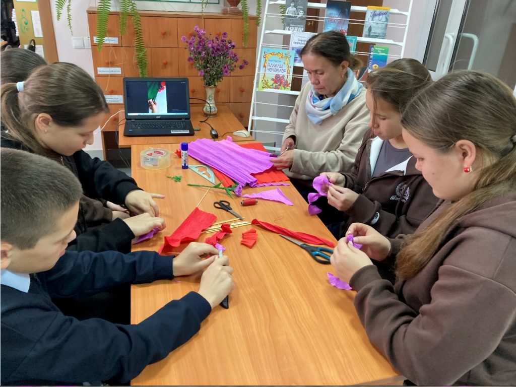 25 октября в рамках программы «Пушкинская карта» в Большебитаманской сельской библиотеке был проведен познавательный мастер-класс «Цветы в литературе и искусстве». На мероприятии была представлена литература о цветах, которые с давних времен служили для людей вдохновляющей силой. Благодаря этим хрупким созданиям природы, человечеством были созданы величайшие произведения литературы и искусства. Об этом участникам поведал библиотекарь по ходу мастер-класса. Люди изготовляли цветы еще в глубокой древности. Делать цветы своими руками – это красивое ремесло. Каждый присутствующий смог прикоснуться к этой деятельности и сделал из гофрированной бумаги свой цветок.