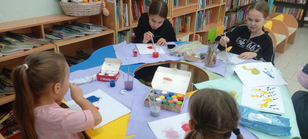 В Центральной детской библиотеке была организована творческая мастерская «Волшебство своими руками». Ребятам рассказали и показали о различных техниках рисования. Дети с большим интересом освоили технику кляксография и создали свои «шедевры». Им очень понравилось такое необычное рисование, ведь каждый смог изобразить то, что ему нравится! Именно рисование в стиле «кляксография» помогает выйти за рамки обычного рисования, помогая детям воображать в процессе творчества. Интересно было наблюдать как из кляксы расцветает поле цветов.