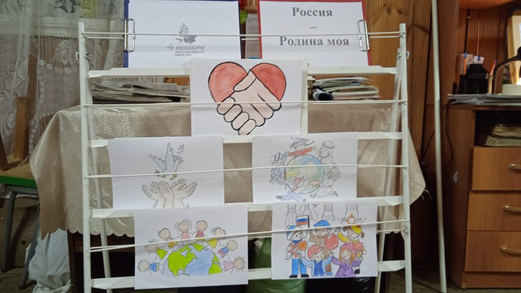 День народного единства в России отмечается 4 ноября. К этому дню в Малобитаманском пункте выдачи книг была оформлена выставка детских рисунков. На рисунках с помощью фломастеров, карандашей, акварельных красок дети запечатлели дружбу народов, любовь к Родине. С помощью рисунков дети рассказали свои представления о народном единстве, отразили мысли и фантазии. Пока дети рисовали, библиотекарь провела обзор книжной выставки, на котором были представлены книги разных народов на разных языках, имеющиеся в фонде библиотеки. Несколько книг было выдано для домашнего чтения.