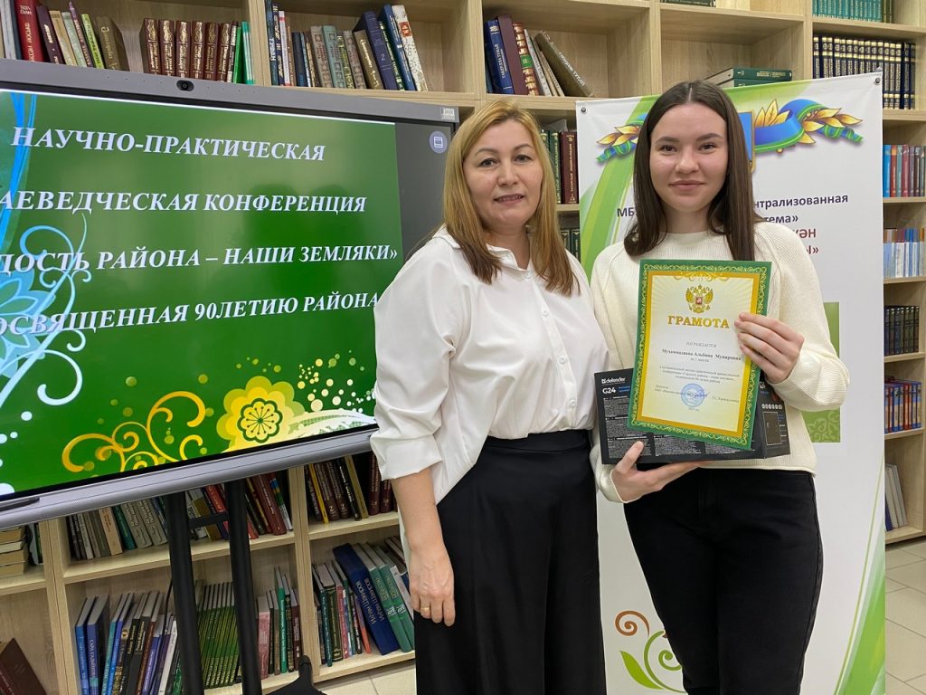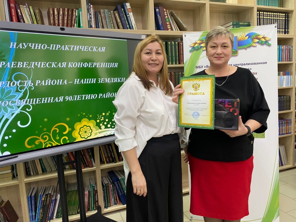В центральной библиотеке состоялось заключительное мероприятие муниципальной научно-практической краеведческой конференции «Гордость района – наши земляки», посвященной 90-летию района. Работа в рамках конференции велась с заочного тура, когда участники занимались собственной исследовательской работой по выявлению новых уникальных данных по краеведению. Программа конференции включала различные номинации: «Писатели, поэты наши современники»; «Деятели культуры и искусства наши современники»; «Видные научные деятели, просветители и учёные наши современники» и «Сельские ремесленники, занимающиеся народными промыслами наши современники». Очень важным было активизировать творческую, познавательную и интеллектуальную инициативу читателей библиотек района посредством привлечения их к исследовательской и проектной деятельности по изучению исторического и культурного наследия родного края. Выявление талантливых людей среди жителей района, сбор и сохранение информации о них – это одна из важнейших задач в краеведческой деятельности библиотек.