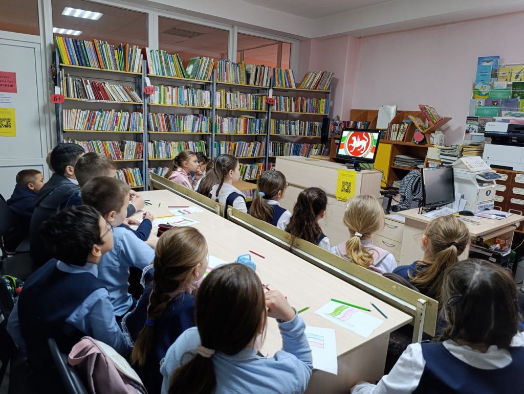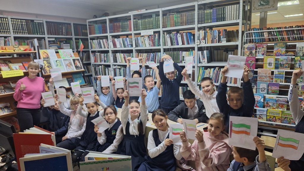 К Дню Государственного флага Республики Татарстан сельская библиотека провела информационный час. В ходе мероприятия библиотекарь рассказала ребятам о том, когда появились первые флаги, что обозначают цвета триколора, в каких случаях поднимается флаг РТ. Дети узнали интересные факты о флаге, гербе и гимне Республики Татарстан. Ученики нарисовали флаг Татарстана, демонстрируя уважение и любовь к родному Татарстану. В заключение мероприятия ребятам был показан мультфильм «Век Татарстана». Главная цель мероприятия – повышение национального самосознания молодого поколения, укрепление единства народа и популяризация флага Татарстана.