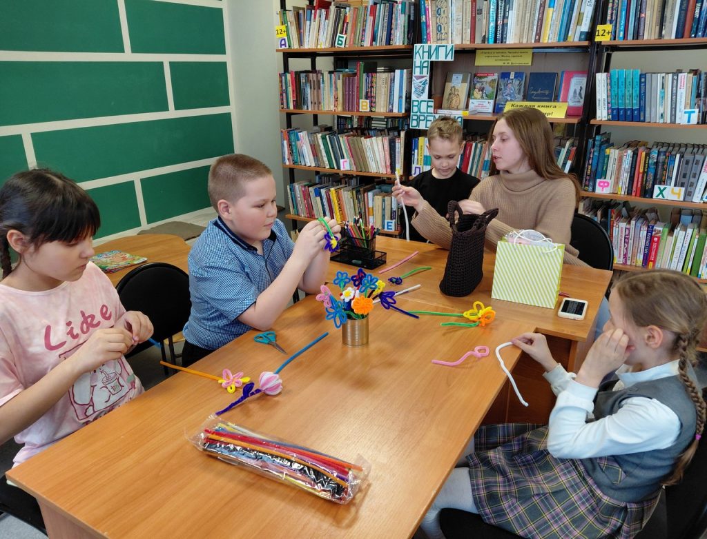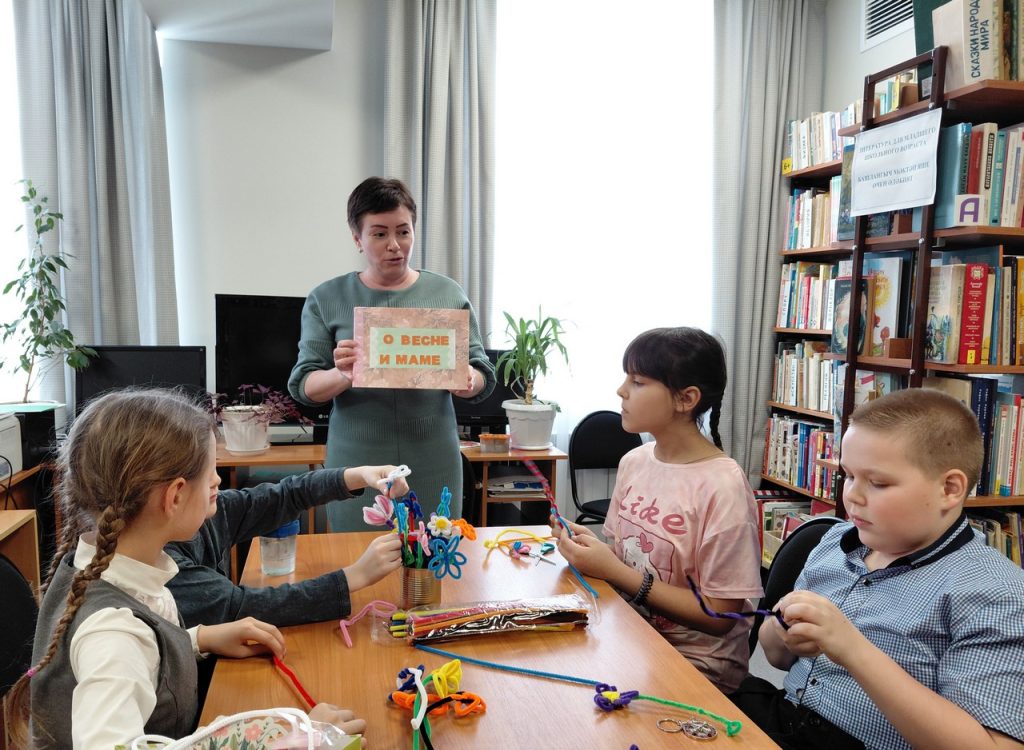 Пришла весна, самое прекрасное время года, пора пробуждения природы и надежд. Приближается самый главный праздник весны – Международный женский день. А в сельской библиотеке Бирюлинского зверосовхоза для читателей был проведен тематический вечер, посвященный весне. В ходе мероприятия библиотекарь рассказала об истории праздника. Также участники мероприятия ознакомились с самодельной книгой под названием «О весне и маме», созданной в стиле декупаж. Были зачитаны стихи из этой книги: «Волшебная весна», «Цветочек маме», «Вазочка с цветами». В заключение вечера ребята приняли участие в мастер-классе по работе с синельной проволокой и сотворили из неё своими руками красивые цветы в подарок своим мамам.