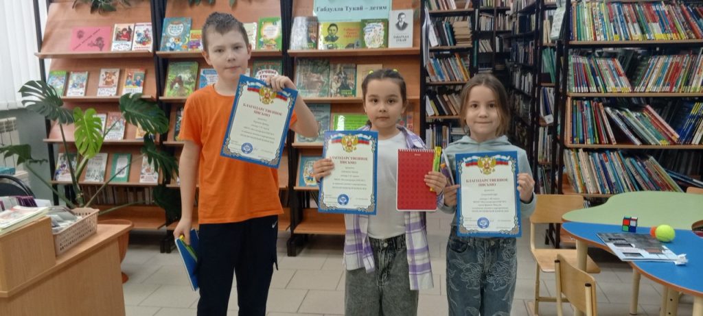 В заключительный  день Недели детской книги в Центральной детской библиотеке ребята приняли участие  в увлекательных  играх и конкурсах. Самые активные участники получили благодарственные письма и  памятные призы. Не обошлось и без подарков для всех — каждый участник мероприятия стал обладателем памятного сувенира, выиграв его в беспроигрышной лотерее.